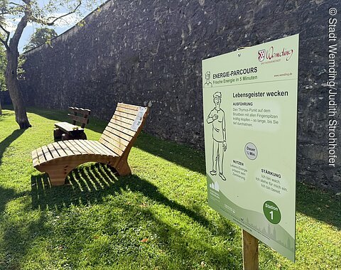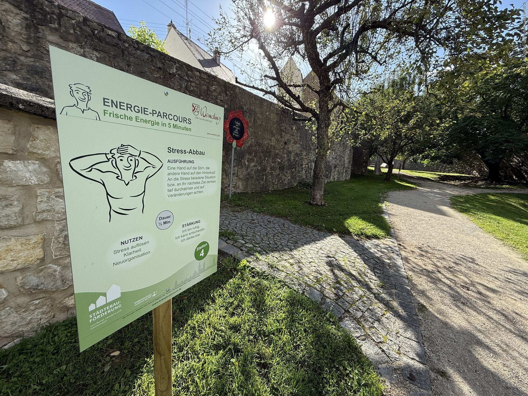 Im historischen Stadtgraben Wemdings wurde der Energie-Parcours im Herbst 2025 installiert. Der Parcours wurde nach dem Konzept des Coaches Klaus Wienert entwickelt. Er basiert auf acht einfachen neuro-energetischen Übungen, die innerhalb von rund fünf Minuten zu mehr Energie, Balance und Gelassenheit führen können.