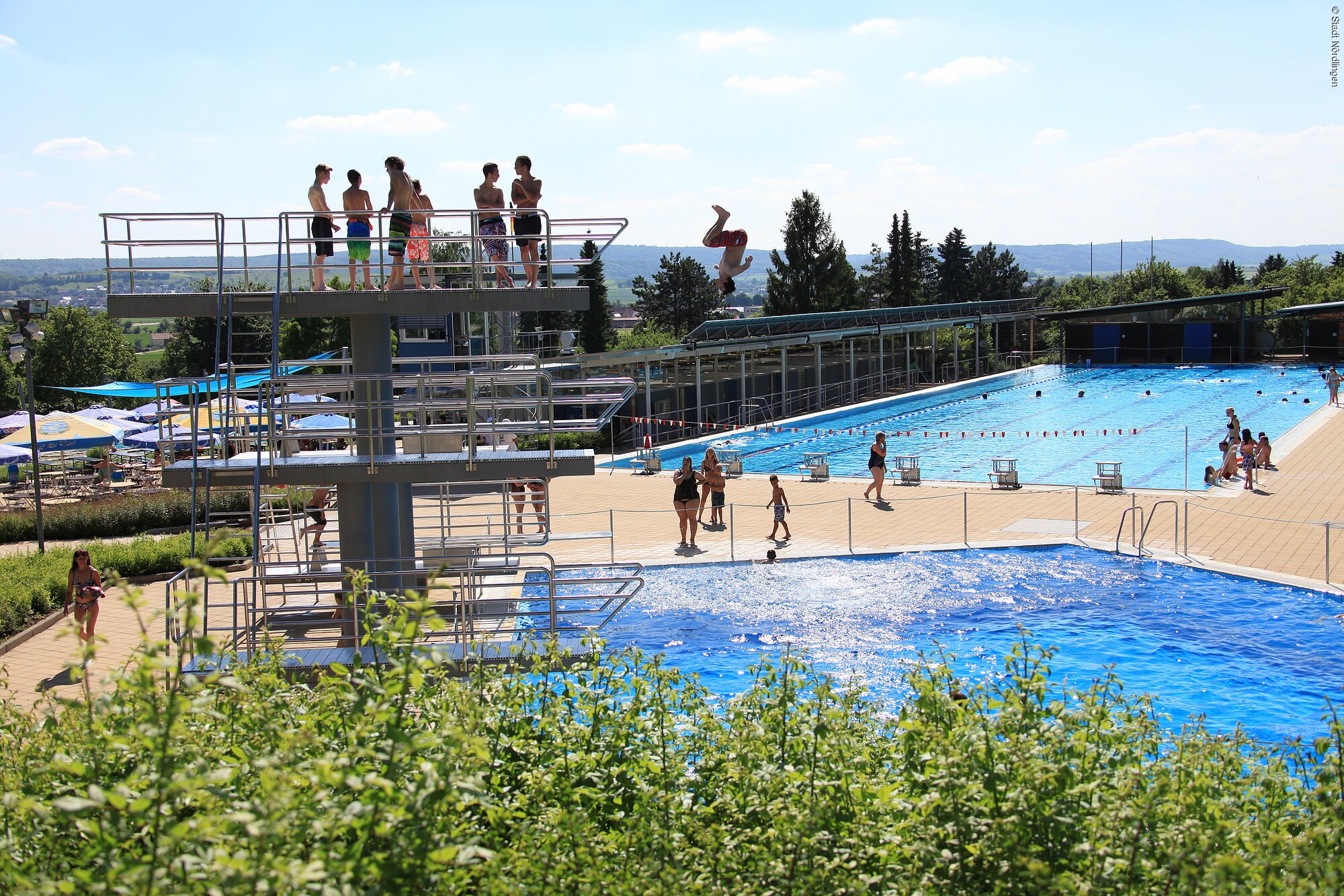 das beheizte Solarfreibad bietet Wasserspaß auf über 2.000 qm