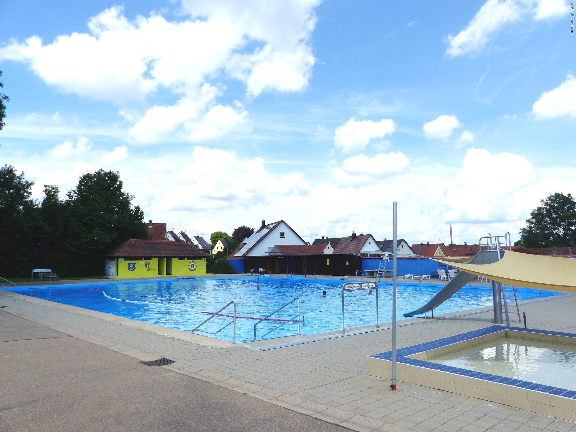 Das Freibad von Monheim gliedert sich in die umliegende Natur wunderbar ein. Bisher von großen Umbau- und Umgestaltungsmaßnahmen verschont, ist es den Badegästen in seiner Ursprünglichkeit erhalten geblieben. Es ist für viele Monheimer und Gäste auch ein Ort der Erholung und Entspannung und wird daher von den Einheimischen liebevoll als "Nostalgiebad" bezeichnet.