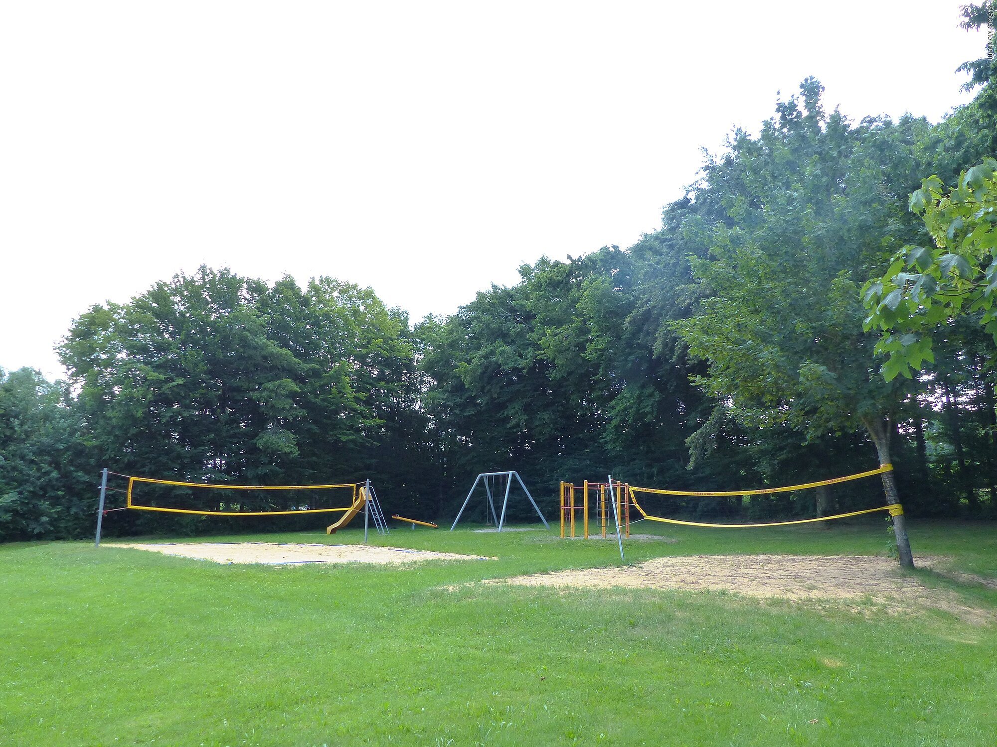 Neben dem unbeheizten Schwimmbecken verfügt die Anlage über eine Wasserrutsche, eine schöne Liegewiese, Umkleidekabinen und einen Kiosk.