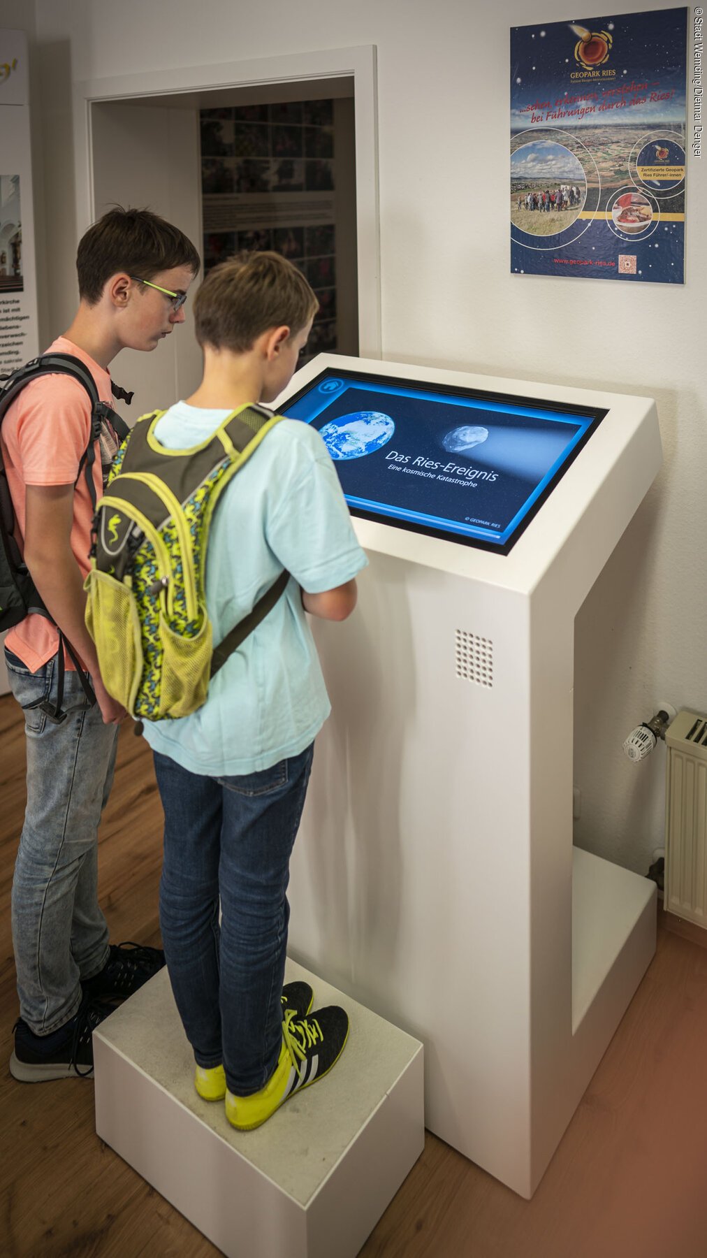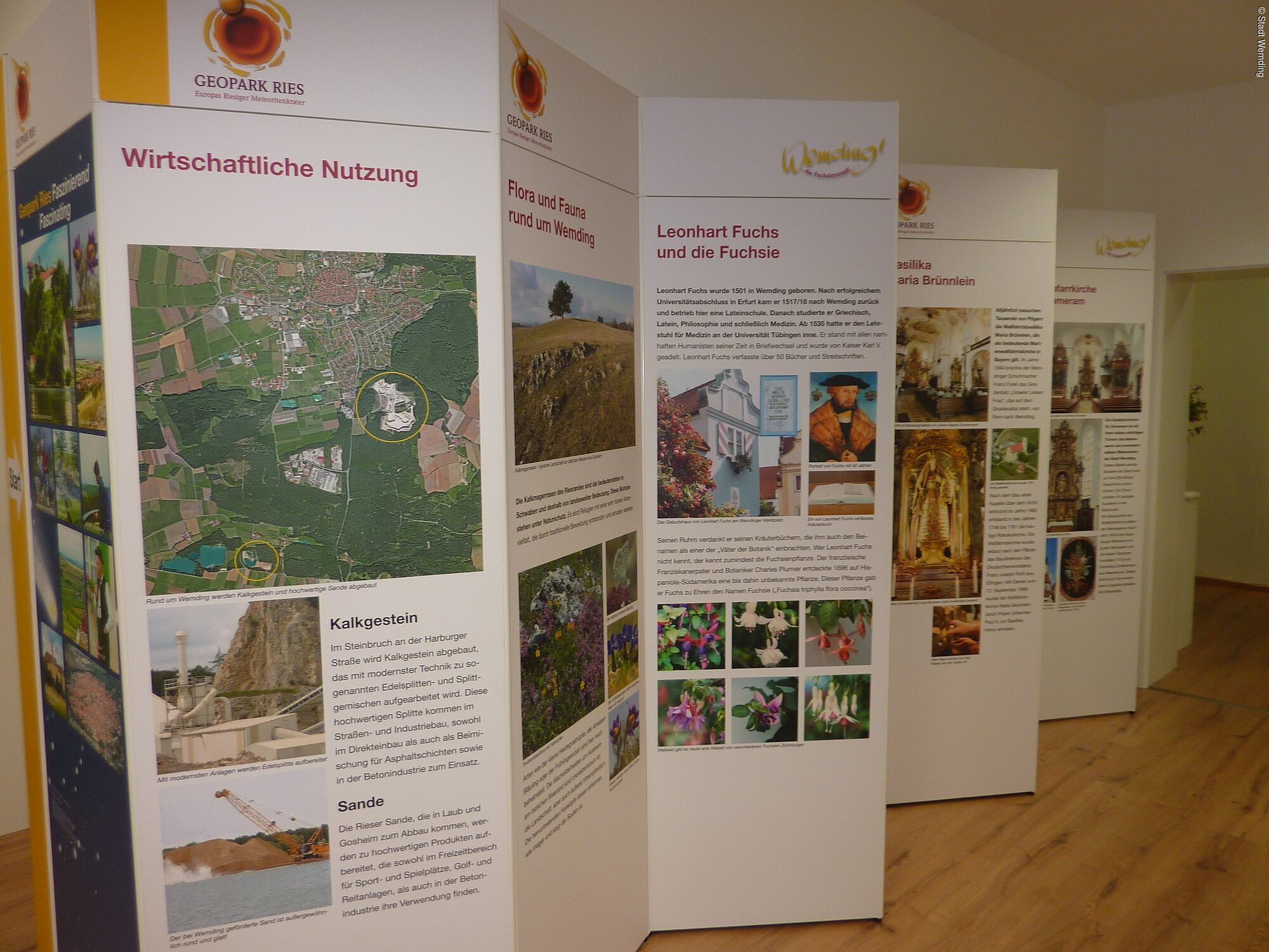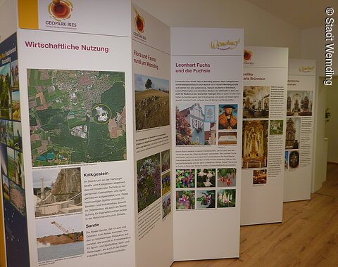 Die Geopark-Infostelle ist in Wemding zentraler Anlaufpunkt für alle, die Informationen über die Entstehung des Rieses durch den Meteoriteneinschlag und den UNESCO Global Geopark Ries gewinnen wollen. Seit kurzem wird die Präsentation durch eine animierte "Uhr der Zeitgeschichte" bereichtert.