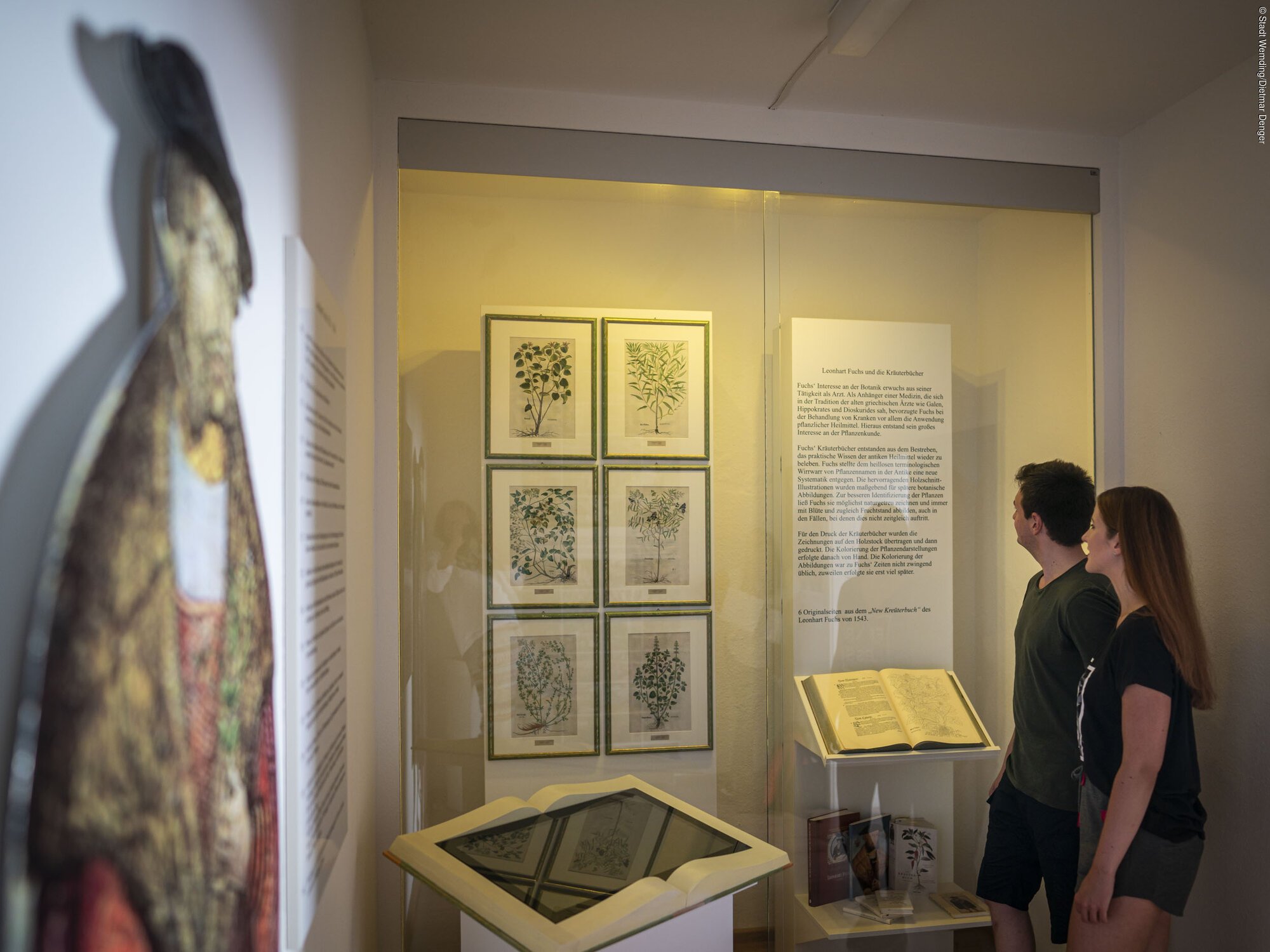 Außerdem erfahren Gäste Interessantes aus der Wemdinger Stadtgeschichte und nicht zuletzt auch über die Verbindung zu Wemdings wichtigstem Sohn - dem Botaniker Leonhart Fuchs. Insbesondere werden original Auszüge aus seinem "New Kreuterbuch" aus dem Jahr 1543 und eine Auswahl an Fuchsienpflanzen präsentiert. Im "digitalen Kräuterbuch" können Gäste im Kräuterbuch von Leonhart Fuchs stöbern.