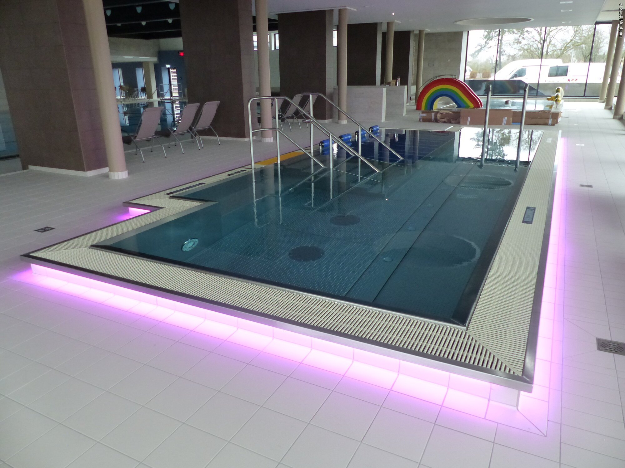 - saniertes Schwimmerbecken 12,5 x 25 m weiterhin mit Hubboden für den Nichtschwimmerbereich