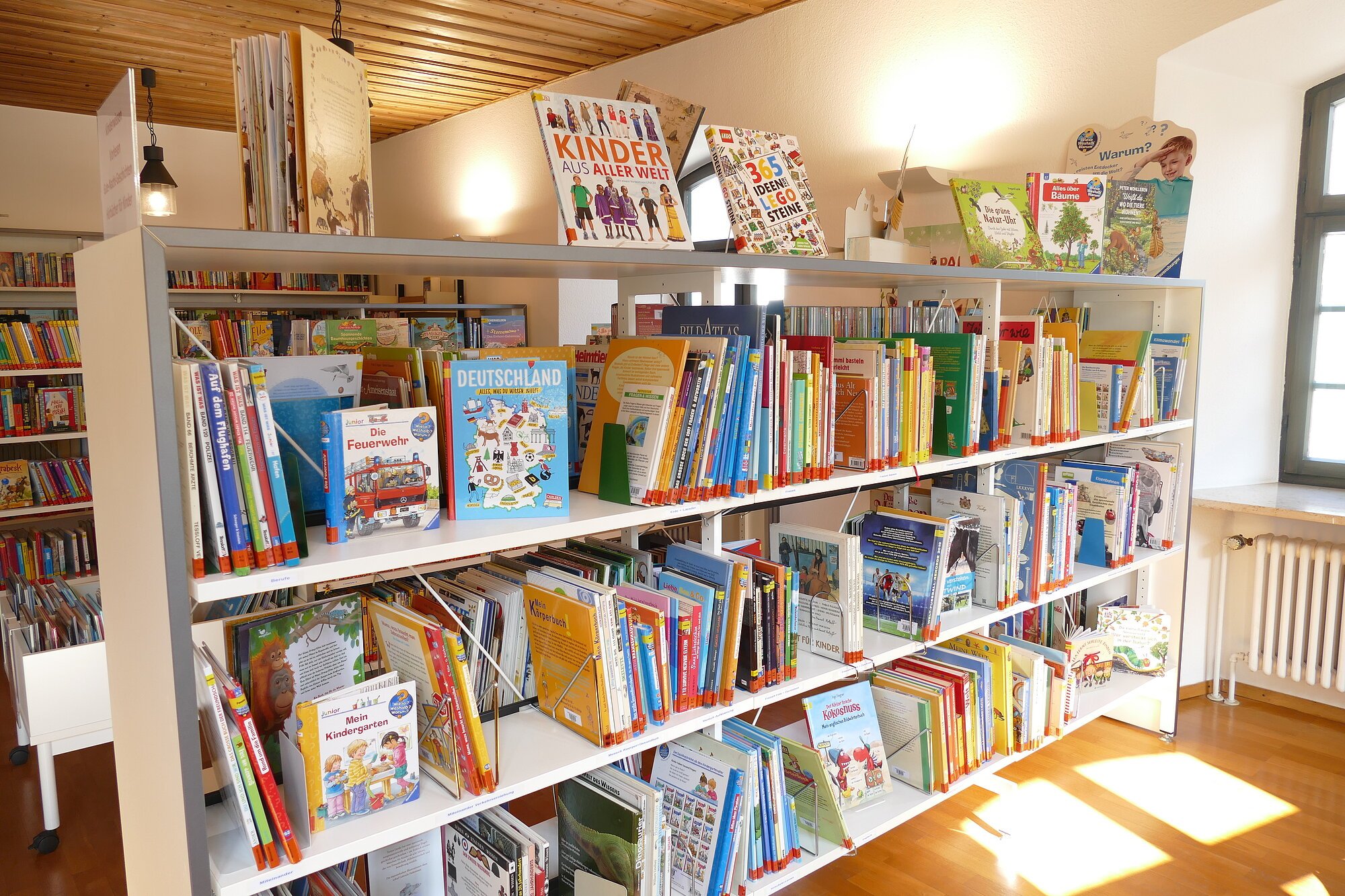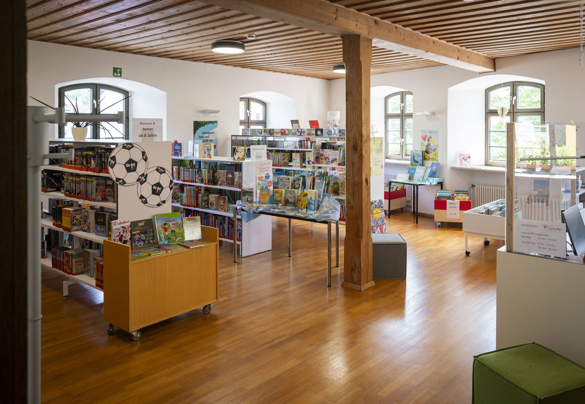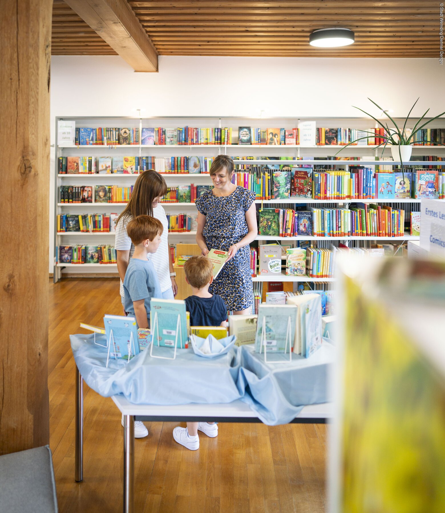 Das vielfältige Sortiment der Kinder- und Jugendbücherei umfasst Bilderbücher, Bücher für Erstleser, beliebte Kinderbuchreihen, Romane für alle Altersgruppen, neue Medien zum interaktiven Lesen (z. B. Tiptoi, Bookii), digitale Lernspiele (Edurino) sowie eine bunte Auswahl an Kindersachbüchern. Für erwachsene Leser ist vom Urlaubschmöker über historische Romane, Krimis bis hin zur literarisch anspruchsvolleren Belletristik für jeden Lesegeschmack das passende Buch vorhanden. Ratgeber und Sachbücher ergänzen unser Sortiment. Ganz neu sind außerdem Spiele für die ganze Familie ausleihbar.