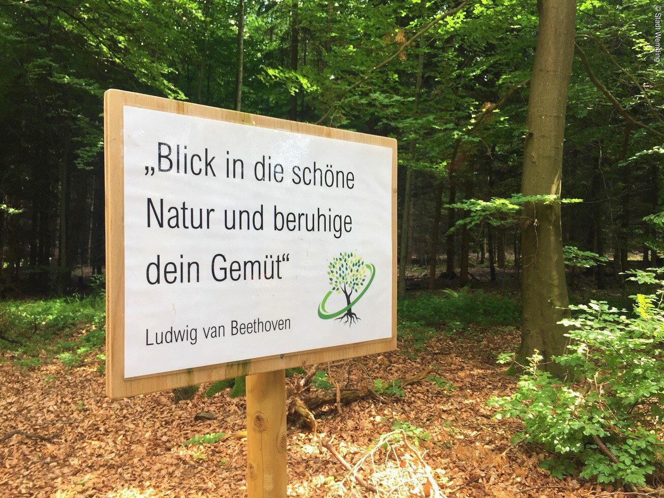 Energie atmen, Ruhe spüren, Kraft finden – ein Wald kann eine besondere Wirkung auf Körper und Geist haben. Der Trend des sog. „Waldbadens“ beschäftigt seit einiger Zeit den Verein Lebendiges Wemding orientiert an verschiedenen Heilwäldern in ganz Deutschland. Um das Waldbaden auch in Wemding stärker erlebbar zu machen, wurden in Zusammenarbeit mit der Stadtverwaltung vier kleine Ruheoasen im Wald nahe des Wemdinger Waldsees geschaffen.