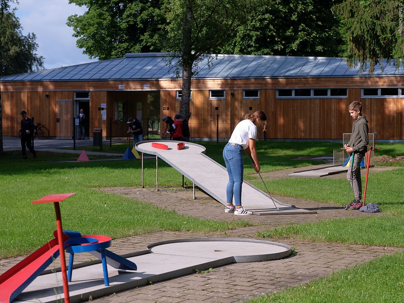 weite Liegewiesen zum Sonnen, Plätze für Boule, Indiaca, Beachvolleyball, Tischtennis oder Minigolf. Mit Bootsverleih und SUP-Board-Verleih. Für die Kinder gibt es Spielplätze, ein Planschbecken und eine Matschanlage. Ein Kiosk mit Biergarten bietet Erfrischungen, Imbisse und Kuchen an.