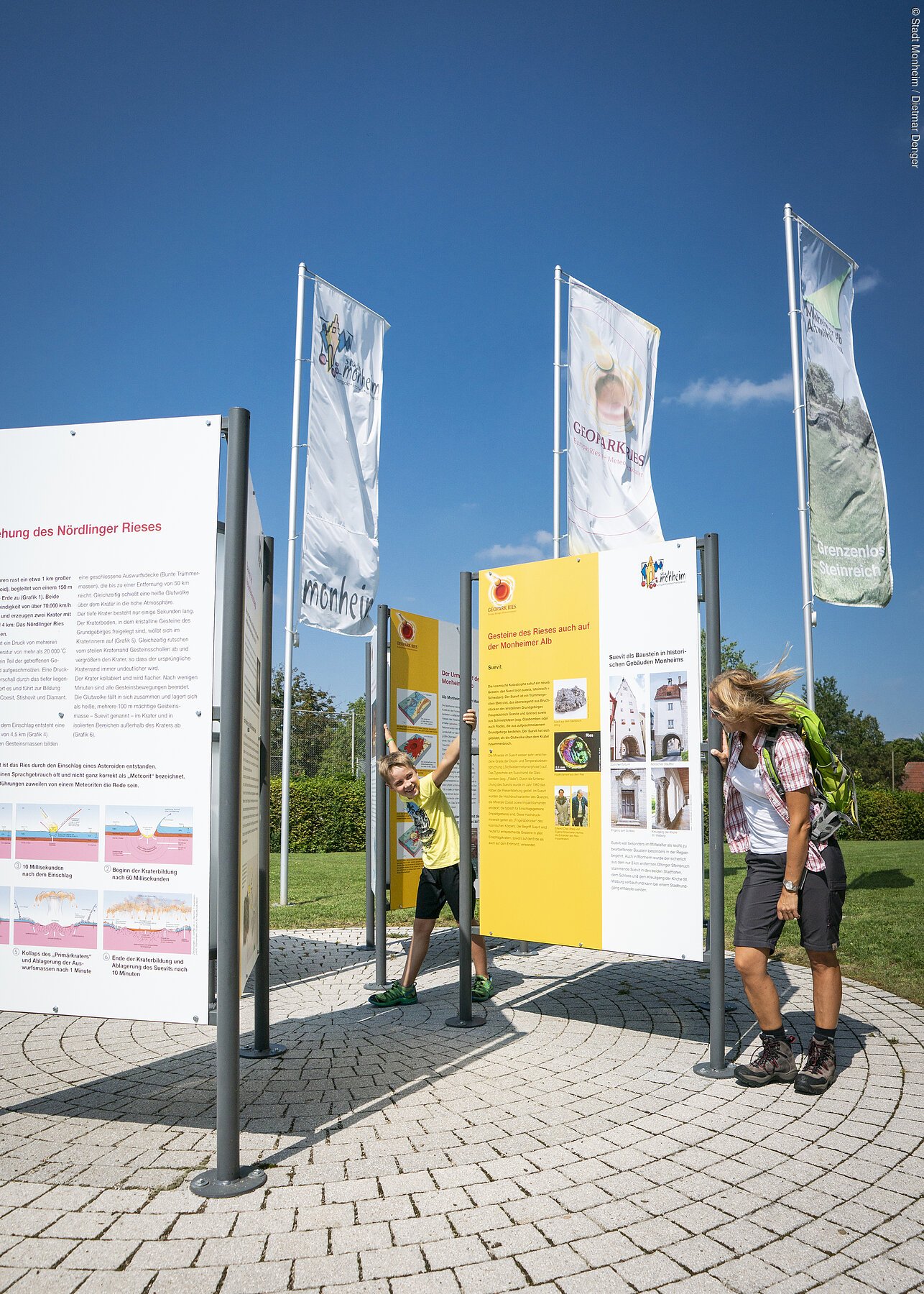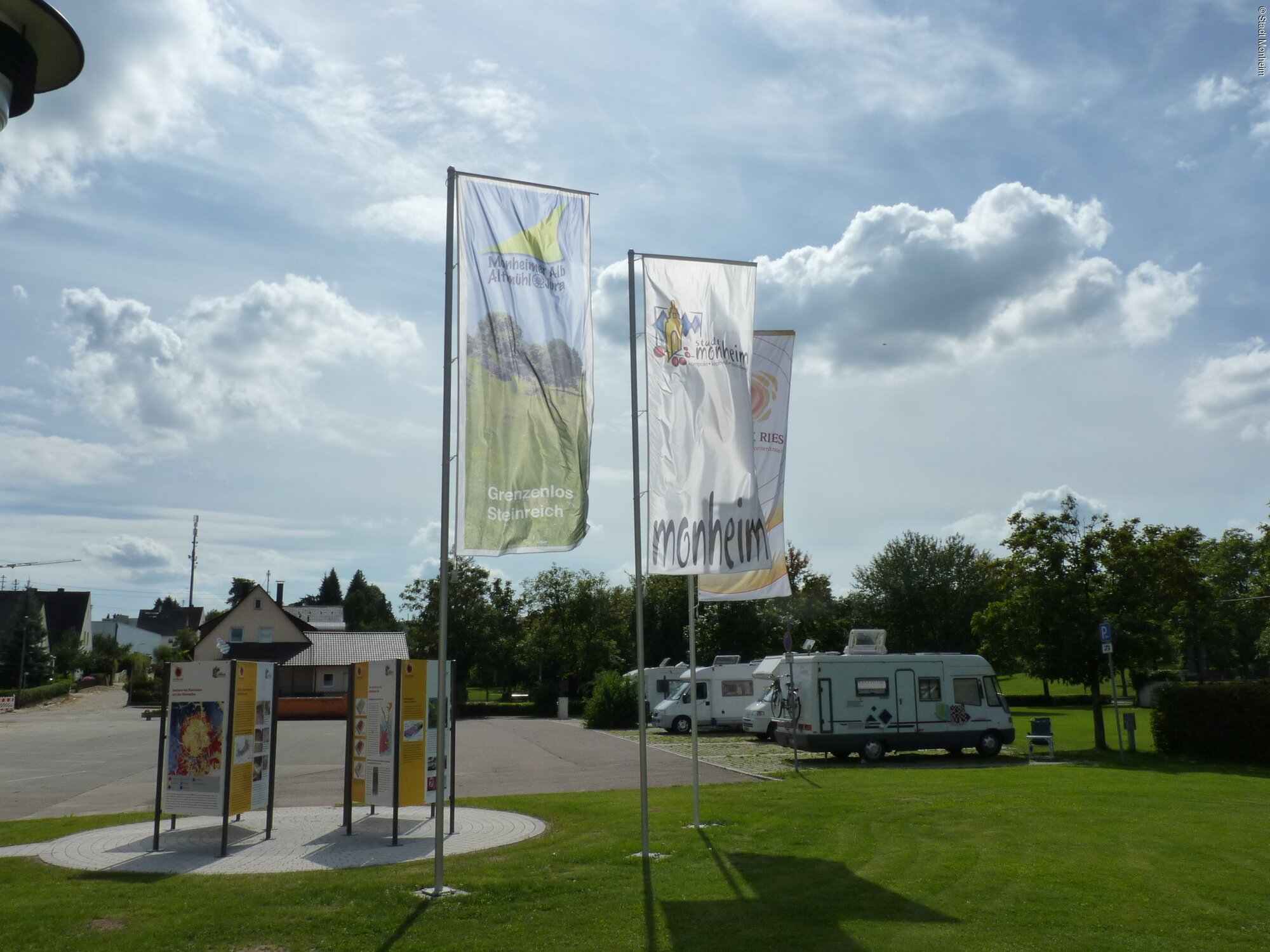 Direkt am Platz befindet sich eine Geopark Ries-Infostelle. In Monheim gibt es ein Freibad sowie das JURABAD (Hallenbad). Die beiden Bäder sind ebenso wie die Tourist-Information, die örtlichen Sehenswürdigkeiten sowie Einkaufs- und Einkehrmöglichkeiten gut zu Fuß erreichbar.