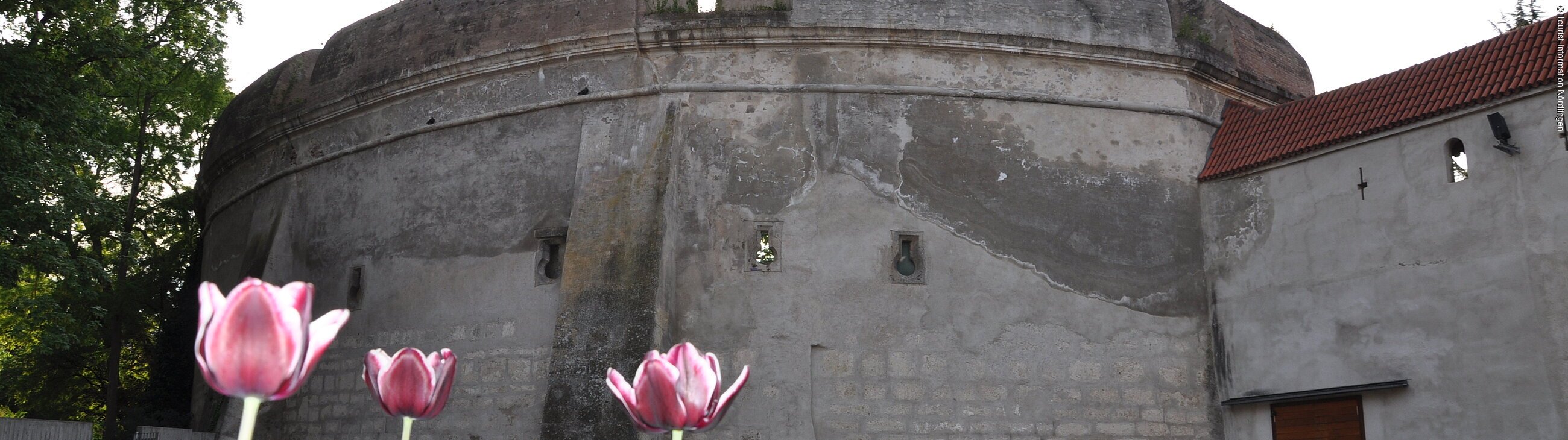 Ein von Kirchenbaumeister Nikolaus Eseler errichteter Vorgängerbau ist in das Jahr 1449 zu datieren. Mitte des 16. Jahrhunderts wurde das heute erhaltene Bauwerk durch Caspar Walberger errichtet. 1554 war die Alte Bastei als eine zweigeschossige Kasemattenanlage fertig gestellt, wie die Bauinschrift "1554 CW" dokumentiert. Eine weitere Bauinschrift "1598 WW" verweist auf den Ausbau der Bastei durch Wolfgang Walberger. Die Stadtbefestigung musste hier besonders verstärkt werden, da Angriffe auf die Stadt vom nahe gelegenen Galgenberg aus besonders gefährlich waren. Insgesamt konnte die Alte Bastei mit zehn Geschützen bestückt werden. 1839 aber wurden die Kasemattengewölbe abgetragen. In der Folgezeit nutzten unter anderem die Glockengießer die Bastei. Seit den 1930er Jahren ist dem Verein Alt Nördlingen die Alte Bastei als Freilichtbühne übertragen, die jedes Jahr im Juli Tausende von Besuchern anlockt.