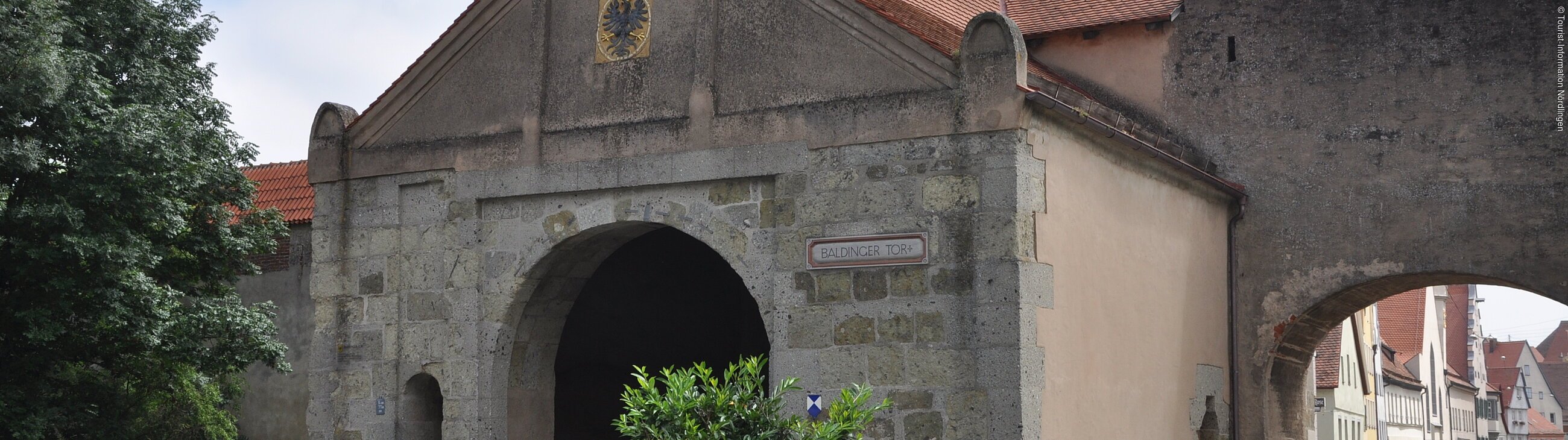 Bereits 1376 ist der Baldinger Torturm vorhanden - das ausgedehnte Vorwerk vollendet 1406 ein Meister Wenzlaw. Dieses Vorwerk am Baldinger Tor mit der sogenannten Judenmauer war eine Art Torburg, welche die Funktion und Aufgabe einer Bastei erfüllte.1534 wurde ein neuer großer Turm, namens "Kaiserturm", gebaut. Dieser stand im Bereich der Judenmauer der Vortor-Anlage und war wahrscheinlich eine Art Quarantäne-Einrichtung. Die Vorsichtsmaßregel richtete sich offenbar gegen die hier ankommenden (Wallersteiner) Juden - daher der Name Judenmauer. Im Dreißigjährigen Krieg wurde das Baldinger Tor stark beschädigt, sodass es trotz verschiedener Ausbesserungsarbeiten 1703 einstürzte - fünf Personen fanden dabei den Tod. 1705 wurde der Restbau der Toranlage renoviert und erhielt dabei das heutige Aussehen. Die Judenmauer und der Kaiserturm wurden im Jahre 1820 abgebrochen.