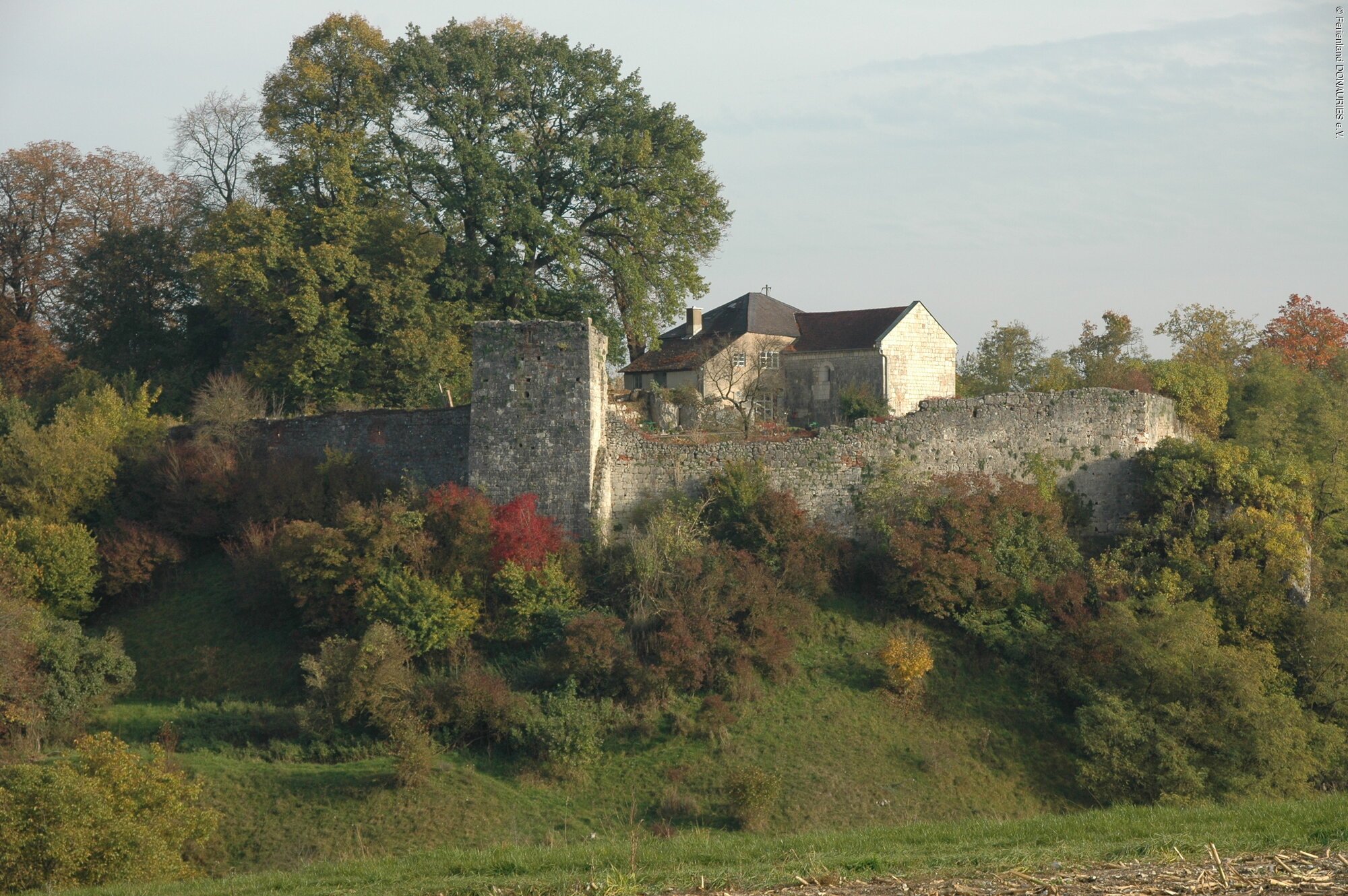 Historische Burgruine auf dem "Schlossberg" am nördlichen Rand Ortschaft Graisbach (Gemeinde Marxheim). Die Burg wurde vermutlich von "Edlen von Graisbach" als Ministerialenburg für die Grafen von Lechsgmünd erbaut. Nachdem der Stammsitz der Grafen in "Lechsgmünd" im Jahr 1248 durch Regensburger Kaufleute zerstört worden war, siedelten die Grafen nach Graisbach um. Fortan nannten sie sich Grafen von Lechsgmünd-Graisbach. Die Burg wurde über die Jahrhunderte weiter ausgebaut, im 15 Jahrhundert teilweise zerstört und wiederaufgebaut. In 18. Jahrhundert wurde die Burg aufgelassen und als Steinbruch genutzt. Steine der Burg wurden in der Region als Baumaterial, z.B. für die Donaubrücke in Neuburg, verwendet. Heute sind nur noch Reste der Burganlage (Pallas, Bergfried, Ringmauer, Nordwestturm, Brunnenmarkt) zu besichtigen. Besonders hervorzuheben ist die gut erhaltene romanische Burgkapelle St. Pankratius mit Ihren Reliefs am Nordportal sowie Resten der historischen Wandmalereien.