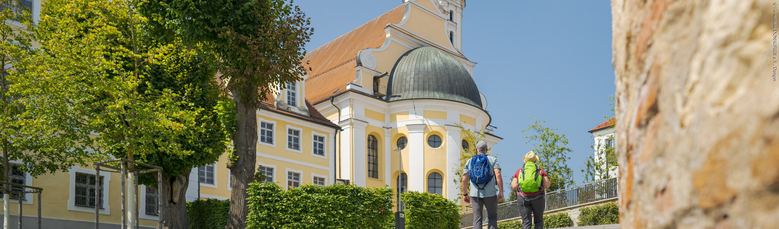Imposante Klosteranlage mit spätbarocker Wallfahrtskirche in prachtvoller Stuckausstattung im Wessobrunner Stil von Franz Schmuzer. Wallfahrtsstätte aufgrund der in der Gruftkapelle aufbewahrten Original-Kreuzpartikel, die im Jahre 1030 aus Konstantinopel nach Donauwörth gebracht wurden. In der ehemaligen Klosterkirche befindet sich außerdem die Grabstätte der Maria von Brabant, Gemahlin des bayerischen Herzogs Ludwig II. dem Strengen. Im Klostergebäude selbst beeindruckt insbesondere der Gallussaal mit Deckenfresko des Donauwörther Rokokomalers Johann Baptist Enderle - leider nicht öffentlich zugänglich. Ludwig Auer, der das Kloster mit dem Erwerb vor dem Verfall gerettet hat, sicherte auch den Fortbestand durch Gründung der heutigen Stiftung Cassianeum.