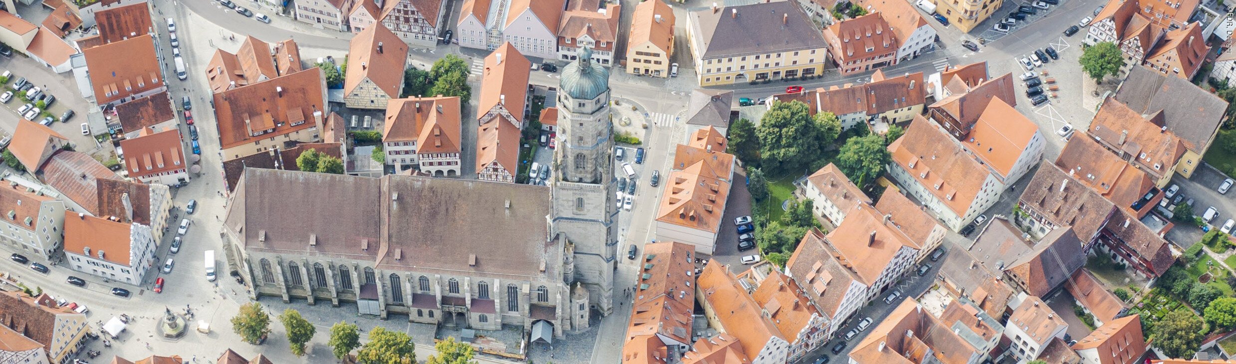 Vom fast 90 Meter hohen „Daniel“, dem Turm der Nördlinger St. Georgskirche, bietet sich ein wunderbarer Ausblick über die historische Stadt Nördlingen und das Ries.