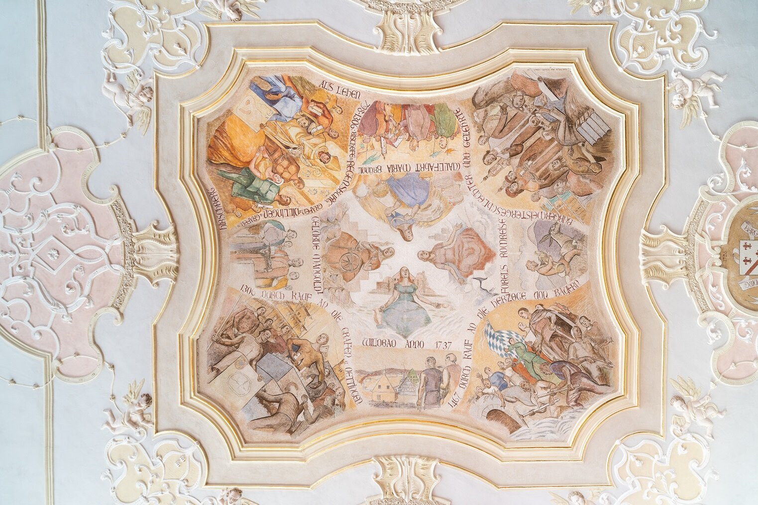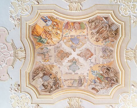 Das zweiflügelige Eingangstor zeigt zahlreiche Schnitzwerke sowie das Wappen der Herzöge von Bayern und der Stadt Wemding. Die Arkadenbögen auf der Westseite grenzten einst den Laubengang für die Händler ab und führten zur ehemaligen Schranne im Erdgeschoss.