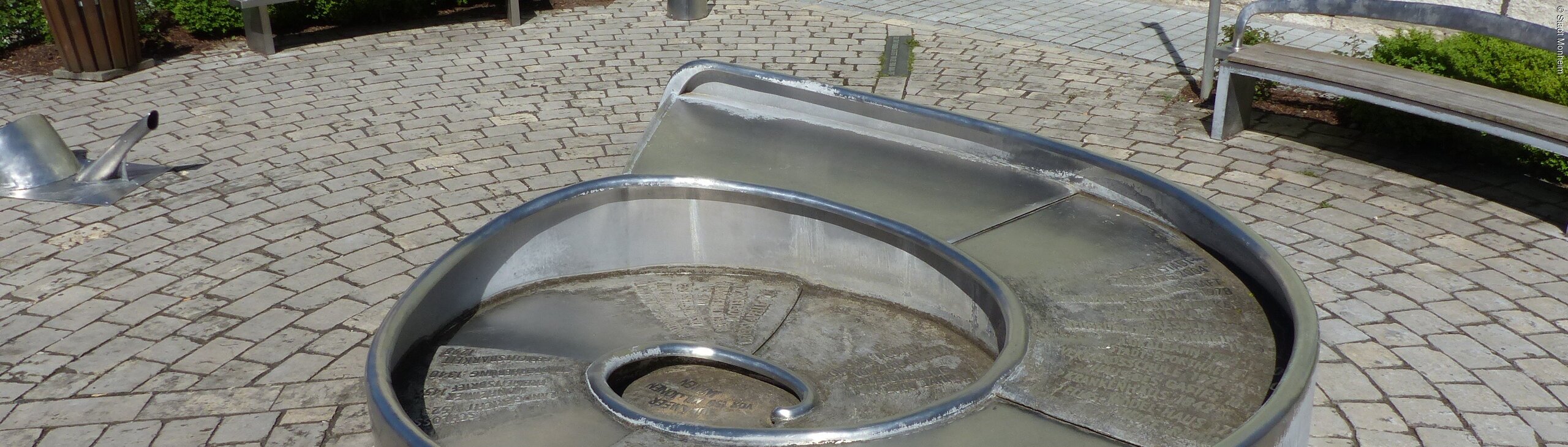 Der Brunnen in Form eines Ammoniten wurde 2005 von der Firma Hama gestiftet.