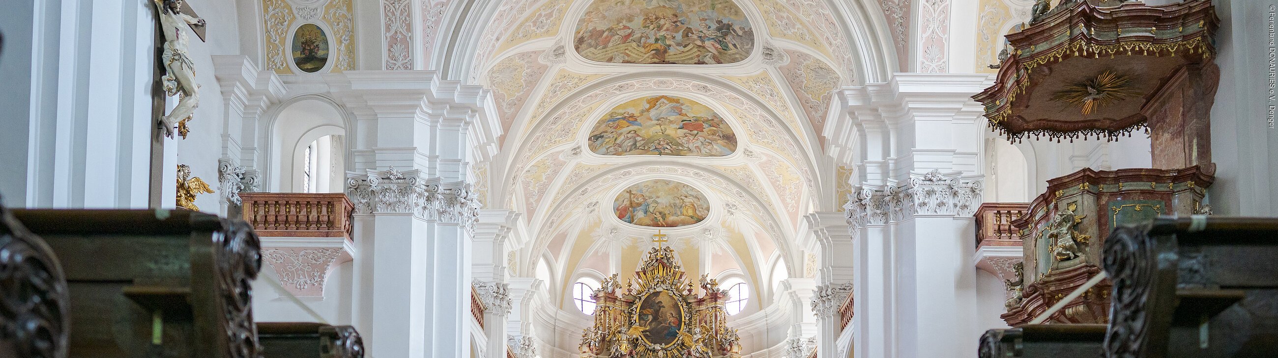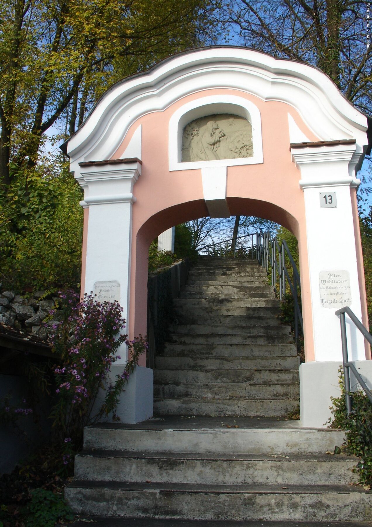 Durch das baorcke Portal, vorbei an den 1977 errichteten Stationen des Kreuzweges, erreicht man das hoch über der Wörnitz gelegene Kleinod. Die Kapelle wurde 1750 unter Abt Cölestin zu Kaisheim mit ovalem Grundriss erbaut. Besonders sehenswert sind der Altar mit Kreuzigungsgruppe und das von Gernhard Göz geschaffene Deckenbild, das die Schlüsselübergabe an Petrus zeigt.