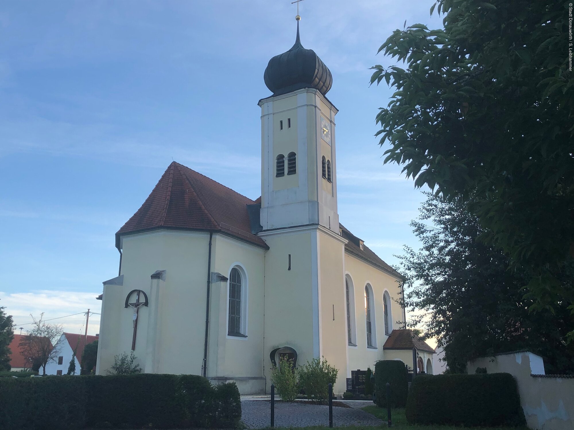 Nach mündlicher Überlieferung wurde die erste Kirche im Jahre 1051 von Papst Leo IX. geweiht. 1792 konnte die Weihe des jetzigen Gotteshauses gefeiert werden. Der Unterbau von Turm und Chor stammt aus dem 15. Jahrhundert. Auf den Decken- und Emporebildern von J.B. Enderle sind die Verherrlichung des Hlg. Georg und die Apostel dargestellt.