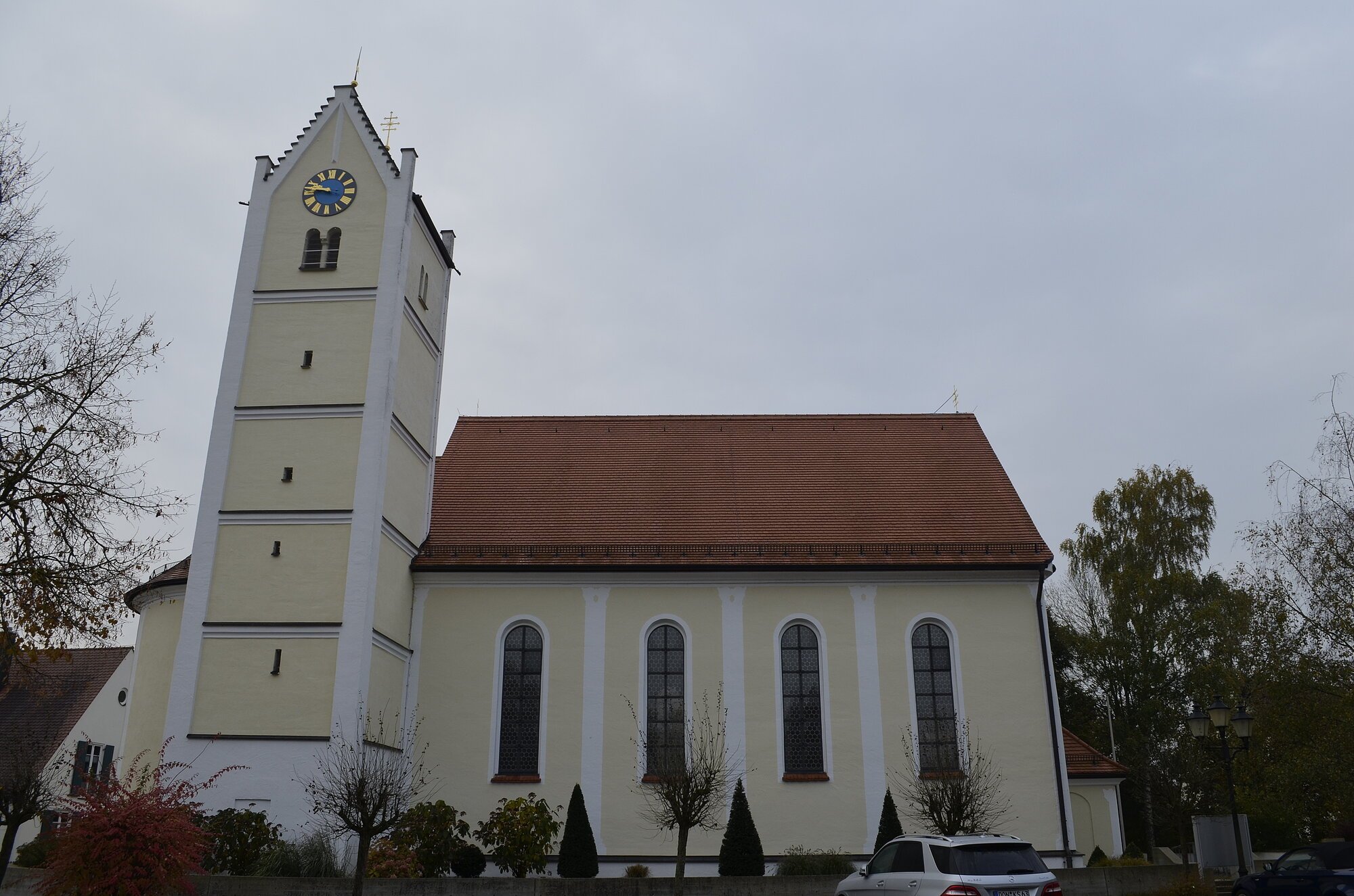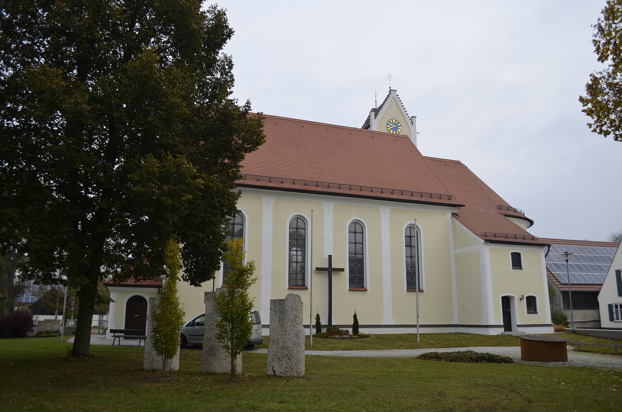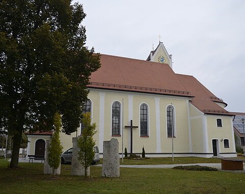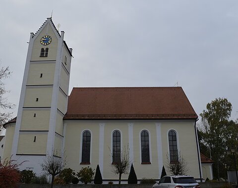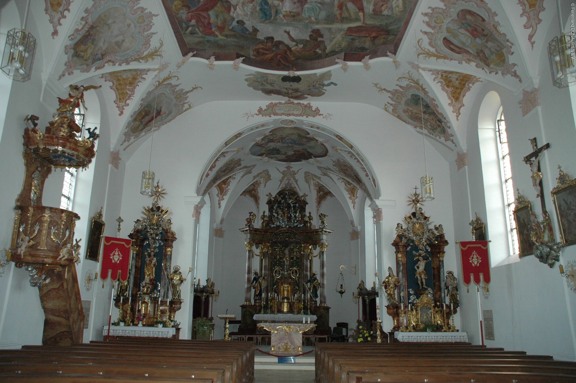 Ausstattung u. a. mit herrlichen Fresken (1755) von Johann Baptist Enderle. Klassizistischer Hochaltar um 1790; Muttergottesfigur am Seitenaltar 1450/60.
