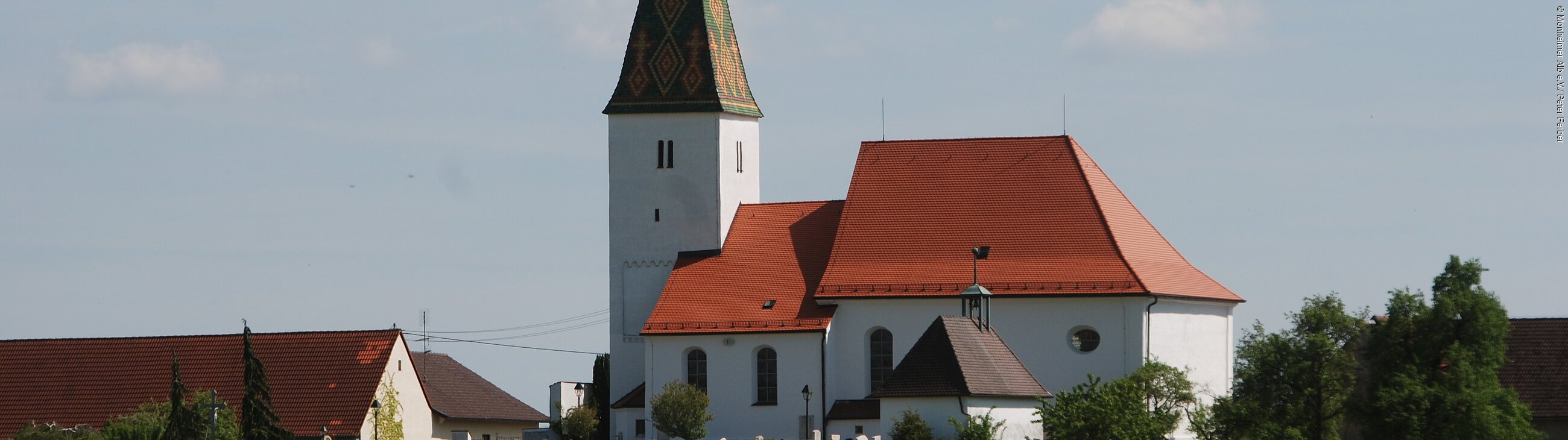 Der heutige Kirchenbau stammt nach Wiederaufbau im Wesentlichen aus dem 18. Jahrhundert. Auffällig ist vor allem der Kirchturm mit seinem farbigen Ziegelzeltdach.