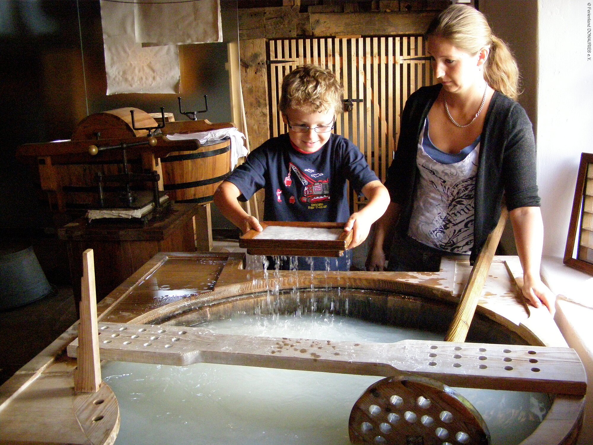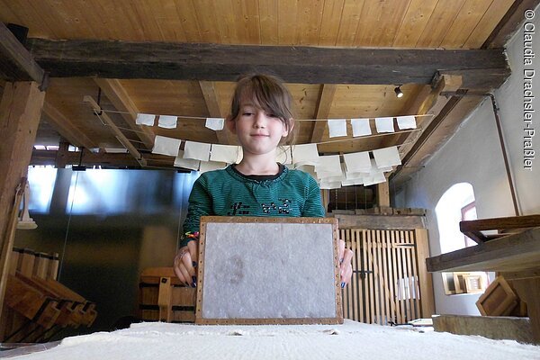 Zudem gibt es eine kleine Druckwerkstatt, die historische Druckmaschinen zeigt und die Verbindung zwischen Papiermühle und Druckereien in einer kleinen Ausstellung verdeutlicht.