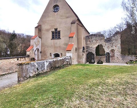 Die am Südrand eines Weilers gelegene Ruine des ehemaligen Kartäuserklosters (1383) vermittelt vor dem Hintergrund des dicht bewaldeten Kartäusertals den Eindruck von Abgeschiedenheit und Stille. Erhalten sind der Chor der Kirche samt originalem Chorgestühl mit Kleeblattmaßwerk (um 1400) sowie die Mauern des ehemaligen Kapitelsaals der Klosteranlage.