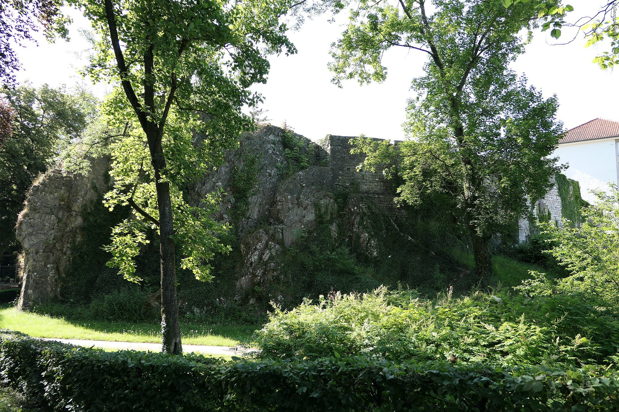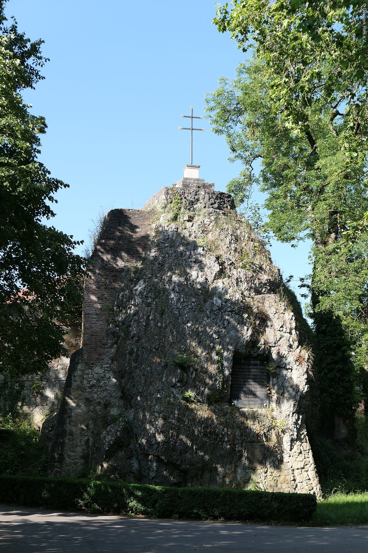 Die allochthone Malmscholle befindet sich inmitten der Stadt Donauwörth und wurde als Teilstück einer Mauer integriert. Bis zum Jahre 1301 stand darauf die Burg Mangoldstein, in der Maria von Brabant, Herzogin von Bayern, durch ihren eifersüchtigen Gatten hingerichtet wurde. Heute verwandelt er sich im Sommer zur Kulisse einer Freilichtbühne. Gedenktafeln erinnern an den 30-jährigen Krieg.