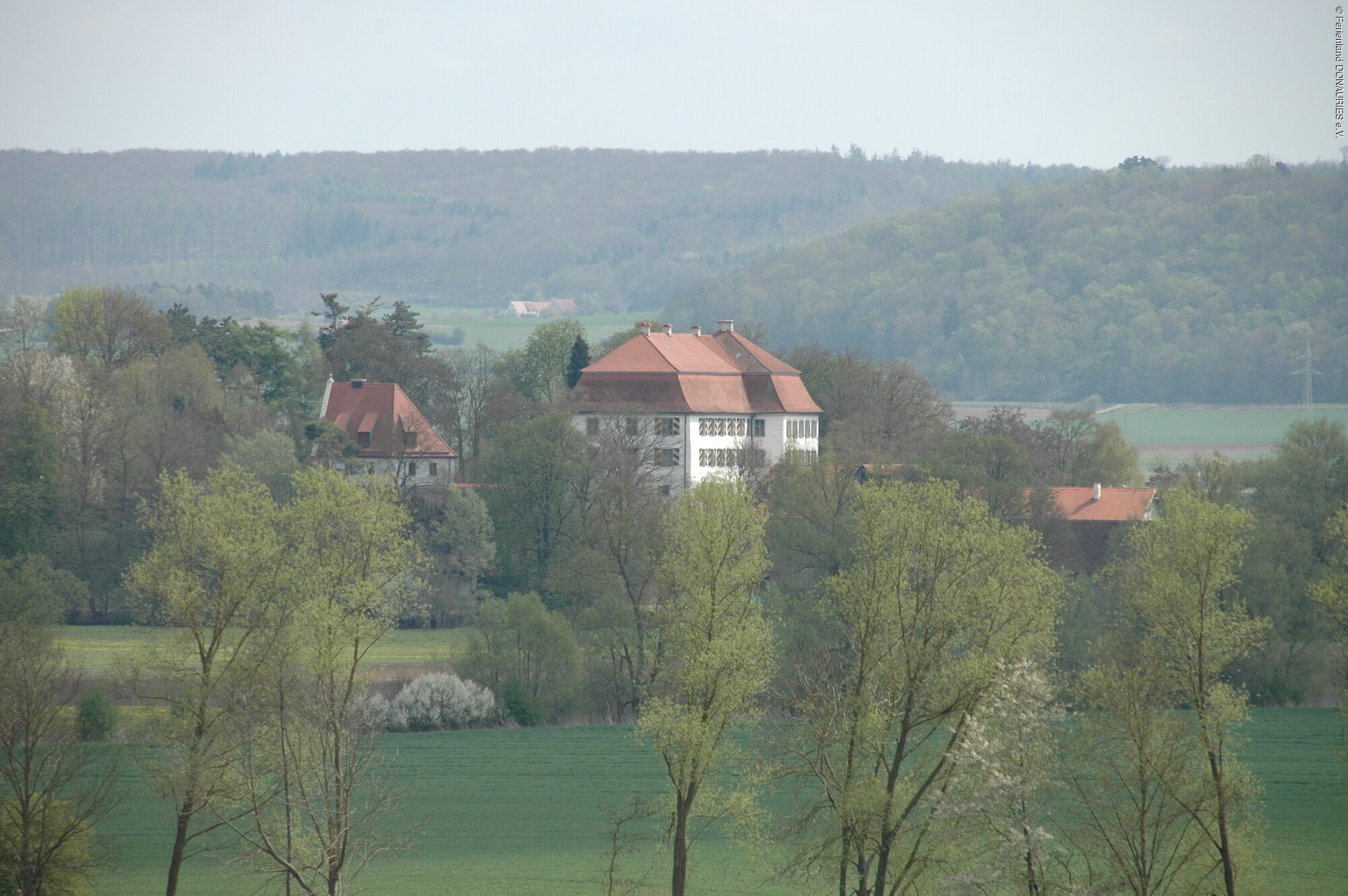 Ehem. Besitz der Herren von Lierheim, 1427 oettingisch, seit 1874 in Privatbesitz. Reste der alten Burg Mitte 12. Jh. 1579 - 1584 Umbau durch Wolfgang Walberger (im Auftrag der Reichsstadt Nördlingen). Das Schloss ist umgeben von einer Ringmauer mit Schießscharten und runden Wächtertürmchen.