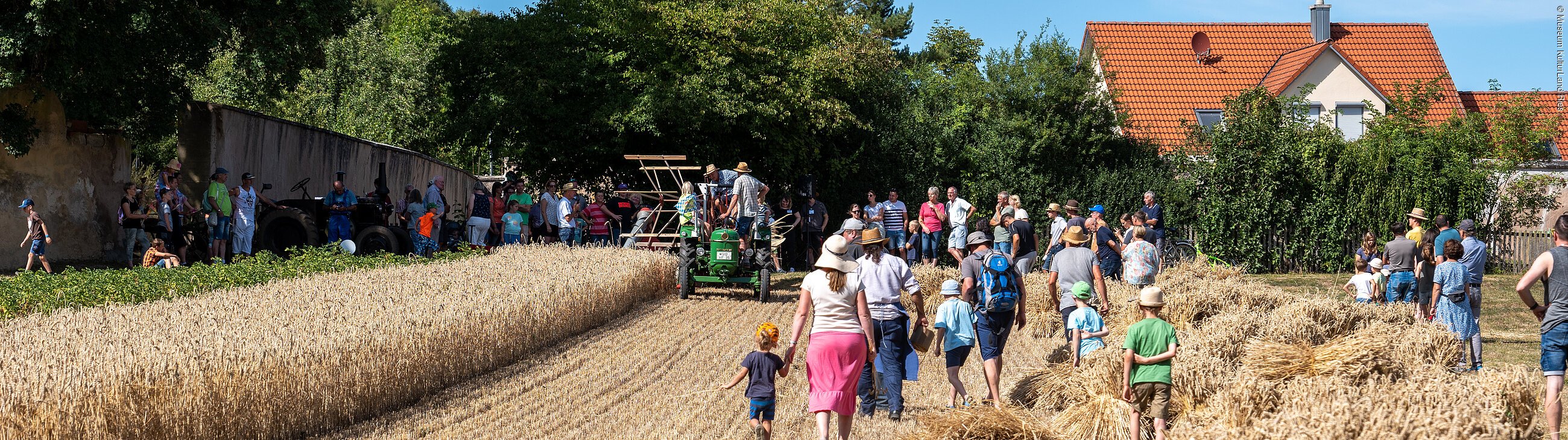 Die jährliche Getreideernte auf den Museumsfeldern ist ein echtes Spektakel. Die Schnitter/-innen führen die mühevolle Handarbeit wie einst mit Sensen und Flegeldrescher vor. Gleichzeitig arbeiten der historische Bindemäher, die transmissionsbetriebene Dreschmaschine und die Ölmühle im Mühlenmuseum. Oldtimer-Traktoren, Aktionen für Kinder und Bewirtung runden das Fest ab.
