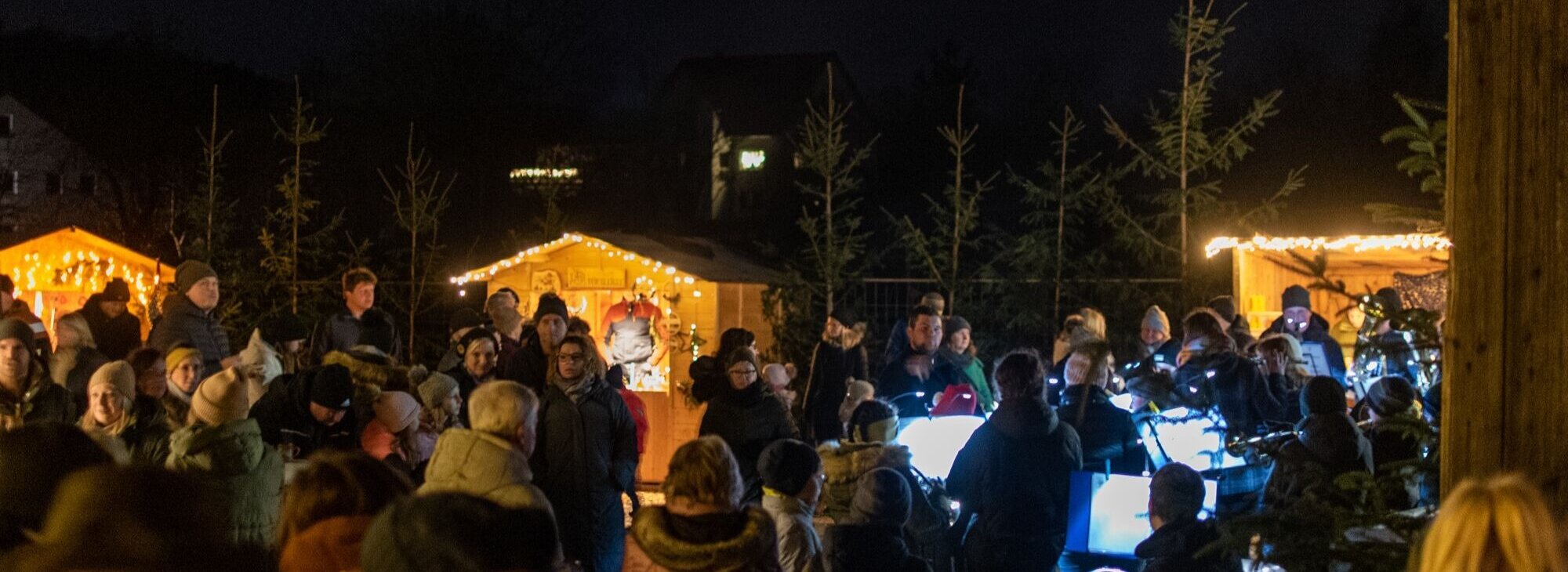 Warme Feuertonnen und viele kleine Lichter schaffen eine stimmungsvolle, weihnachtliche Atmosphäre.