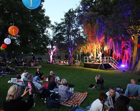 An drei Donnerstagen verwandelt sich der Park in eine stimmungsvolle Kulturbühne. Bringen Sie Picknickdecken und -körbe mit und lassen Sie sich von Live-Musik in einzigartiger Atmosphäre begeistern.