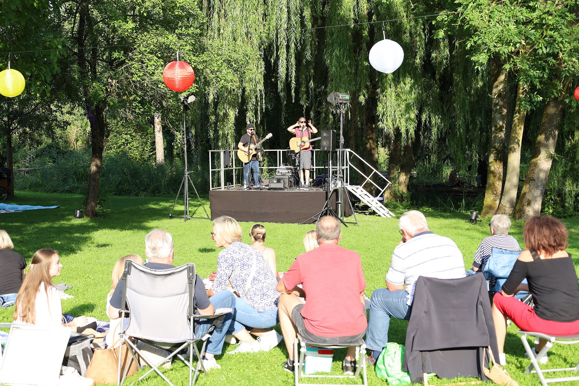 Die Sonne taucht den Stadtpark in goldenes Licht, eine sanfte Brise weht durch die alten Bäume, und das Schloss erhebt sich majestätisch im Hintergrund. Auf den Wiesen breiten sich Decken aus, Picknickkörbe werden geöffnet, Gläser klingen leise aneinander, die Kinder spielen auf dem angrenzenden Spielplatz. Stimmengewirr, Lachen, entspannte Gespräche – dann erklingen die ersten Töne von der Bühne. Während der Musikabend seine Magie entfaltet, genießen die Besucher ihre mitgebrachten Köstlichkeiten. Ein lauer Sommerabend voller Musik, Gemeinschaft und unvergesslicher Momente – genau so fühlt sich Sommer an!