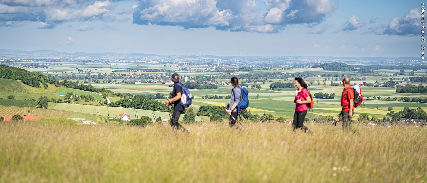 Eine einzigartige Wanderung rund um den Meteoritenkrater "Nördlinger Ries" mit atemberaubenden Ausblicken in die weitläufige Kraterlandschaft.