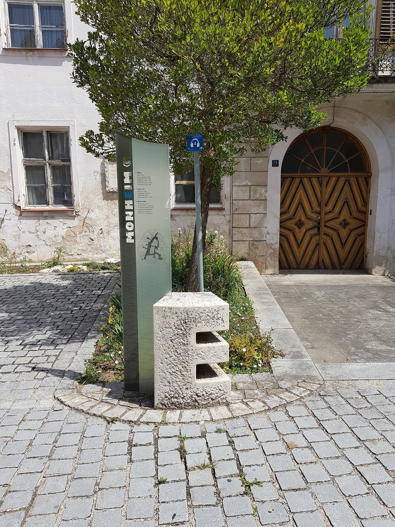 Folgt man den einzelnen Buchstaben, erhält man einen kleinen geführten Stadtspaziergang, auf dem man allerlei Historisches und Sehenswertes zu und in Monheim erfährt.