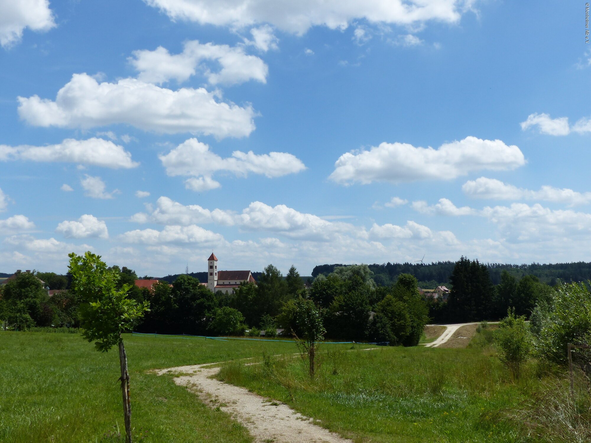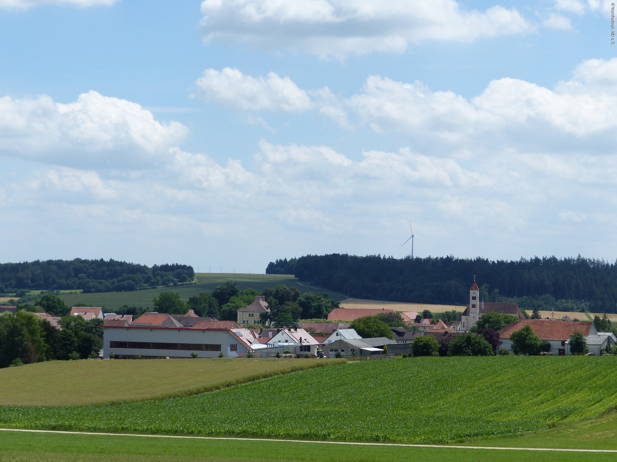 Der Parkplatz am Freibad in Tagmersheim ist Ausgangspunkt unserer Wanderung auf dem Dolinenlehrpfad um Tagmersheim und Rögling, bei der geologische Phänomene der Monheimer Alb auf sechs Infotafeln erklärt werden.