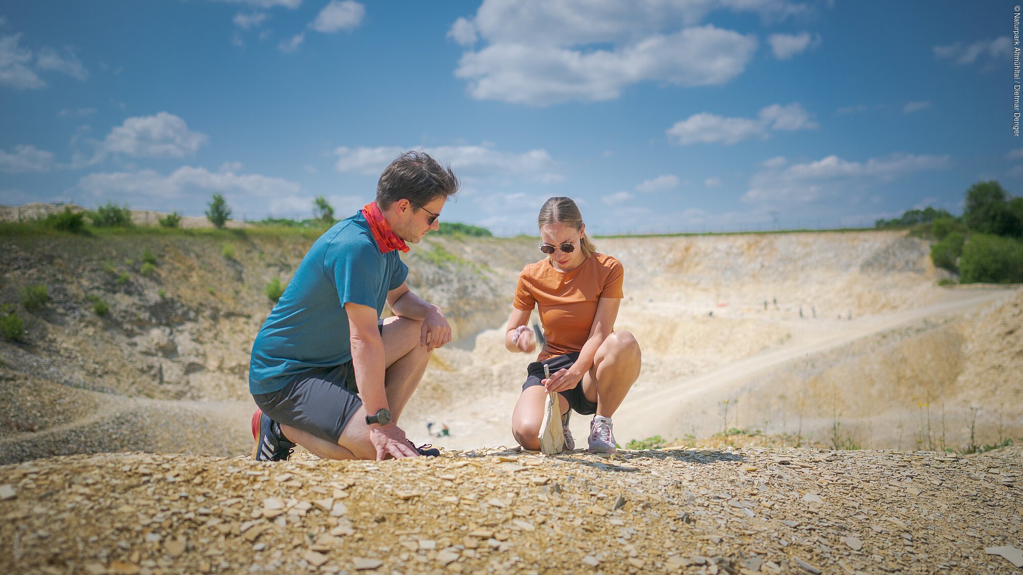 Die Route 1 ist mit rund 201 Kilometern die längere der beiden Hauptrouten am GeoRadweg Altmühltal. Sie beginnt in Nördlingen – mitten im Rieskrater, der vor rund 14,5 Millionen Jahren durch den Einschlag eines Meteoriten entstand. Auf den ersten Kilometern sind die Radler durch den Geopark Ries unterwegs. Neben beeindruckenden kulturellen Sehenswürdigkeiten wie der Wallfahrtsbasilika „Maria Brünnlein“ in Wemding liegen immer wieder Spuren dieser kosmischen Katastrophe am Weg – zum Beispiel im Suevit-Steinbruch bei Polsingen, wo Schmelzgestein sichtbar ist, das bei dem Einschlag entstand.