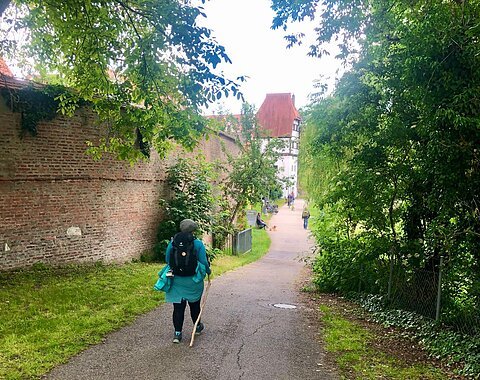 Die Routen von Köln und Fulda kommen bei Donauwörth zusammen, dort führen die Wege über die Friedensbrücke und verlaufen gemeinsam im Nahbereich der Donau über Regensburg bis Passau.