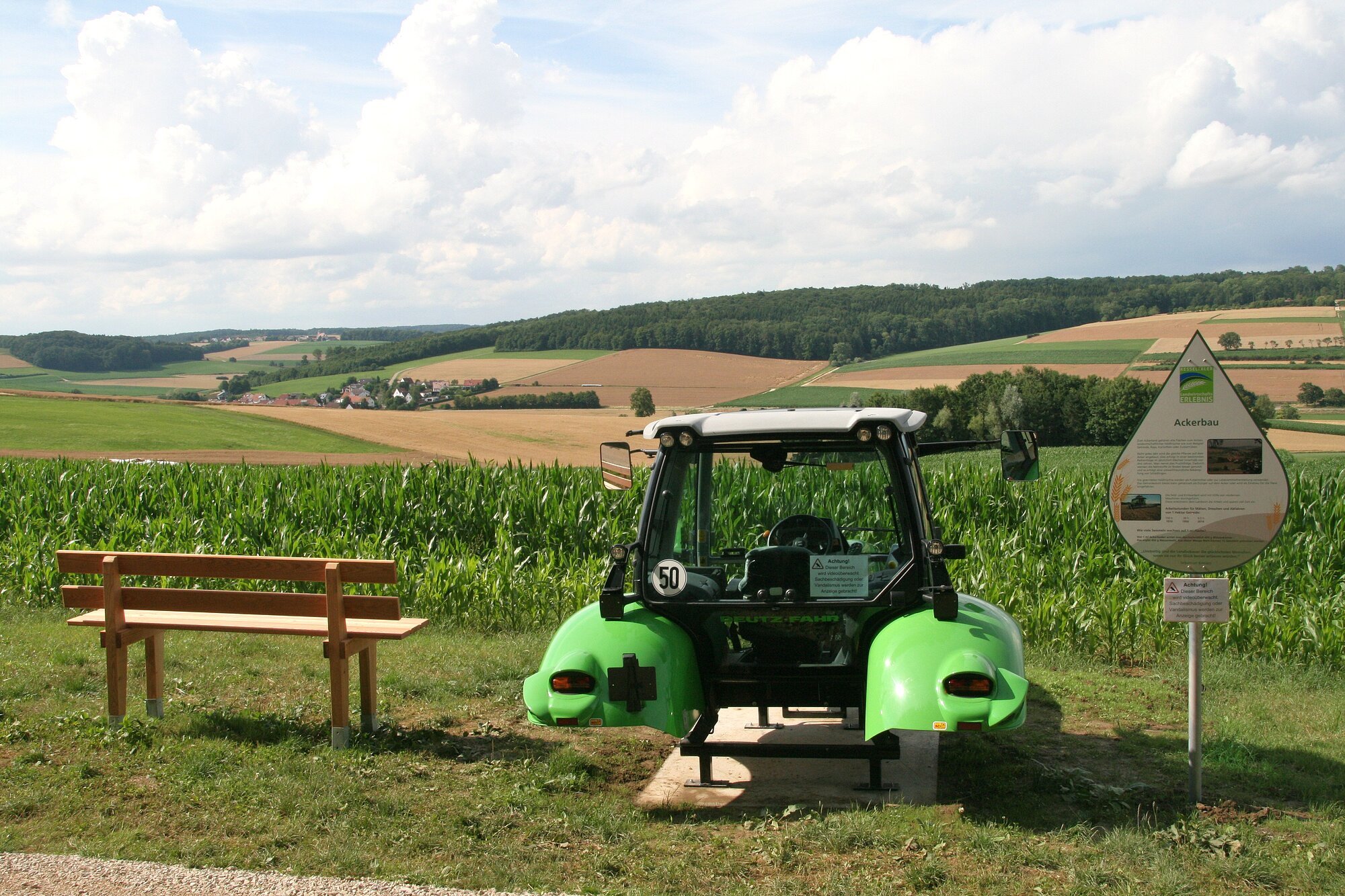Beschäftigung mit der Natur, Verständnis für das System Landwirtschaft und Forsten, sanfter Tourismus vor Ort, Förderung der Regionalität und Vernetzung mit dem Tourismus, den Freizeitwert der Dörfer stärken und die ländliche Wohnqualität erhöhen, die moderne Forst- und Landwirtschaft soll der Bevölkerung nachhaltig vermittelt werden, die Informationsvermittlung soll generationenübergreifend erfolgen und der Rundweg soll die Besucher zum aktiven Erleben anregen und dabei mit Spiel und Spaß die Themen „Rund um die Landwirtschaft“ aufzeigen. Die 15 Stationen des Rundwanderweges wurden jeweils den fünf Säulen bzw. Elementen nach Sebastian Kneipp Wasser, Bewegung, Ernährung, Pflanzen und Balance zugeordnet. Für Wanderer ist dies durch die farbige Umrandung der Info-Schilder erkennbar. Zudem erfahren Sie an den verschiedenen Stationen alles über Landwirtschaft und Forsten: Station 1 - Regionale Produkte Station 2 - Milchverarbeitung Station 3 - Streuobstwiese Station 4 - Lebenslauf der Kuh Station 5 - Der Biber Station 6 - Das Wasser Station 7 - Speiseplan der Kuh Station 8 - Die Wiese Station 9 - Milchgewinnung Station 10 - Der Energielandwirt Station 11 - Ackerbau Station 12 - Arbeit der Bauern Station 13 - Der Wald Station 14 - Die Honigbiene Station 15 - Die Hecke Der Wanderweg verläuft auf asphaltierten und gekiesten Wegen. Er ist sowohl für Radfahrer als auch für die Benutzung mit Kinderwagen und für Rollstuhlfahrer mit Begleitung geeignet. Für den rund 8,5 km langen Rundweg sollten 3 bis 4 Stunden eingeplant werden. Achtung: Der Erlebnisweg wird im Winter nicht geräumt!