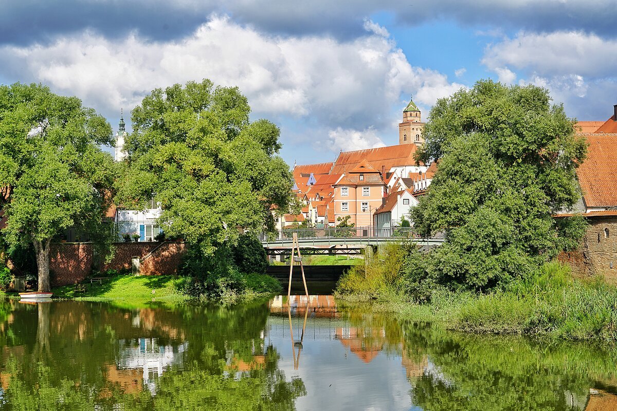 Die romantische Altstadt der ehemals Freien Reichsstadt Donauwörth liegt herrlich eingebettet zwischen den sanften Hügeln der Schwäbischen Alb und den Hängen des Frankenjuras direkt am Zusammenfluss von der langsam fließenden Wörnitz in die stattliche Donau.