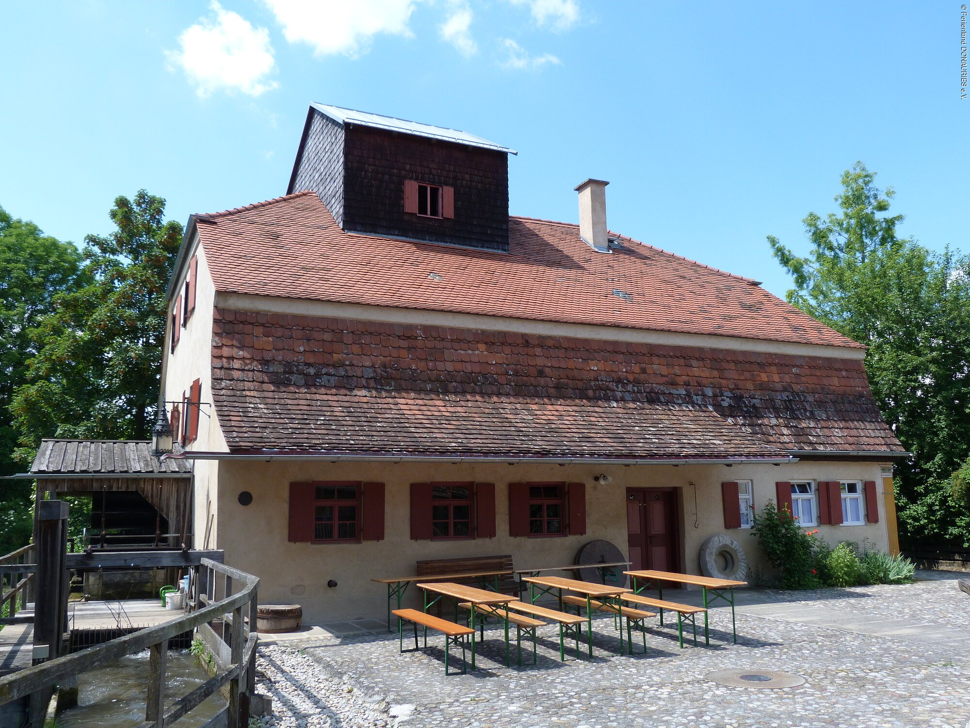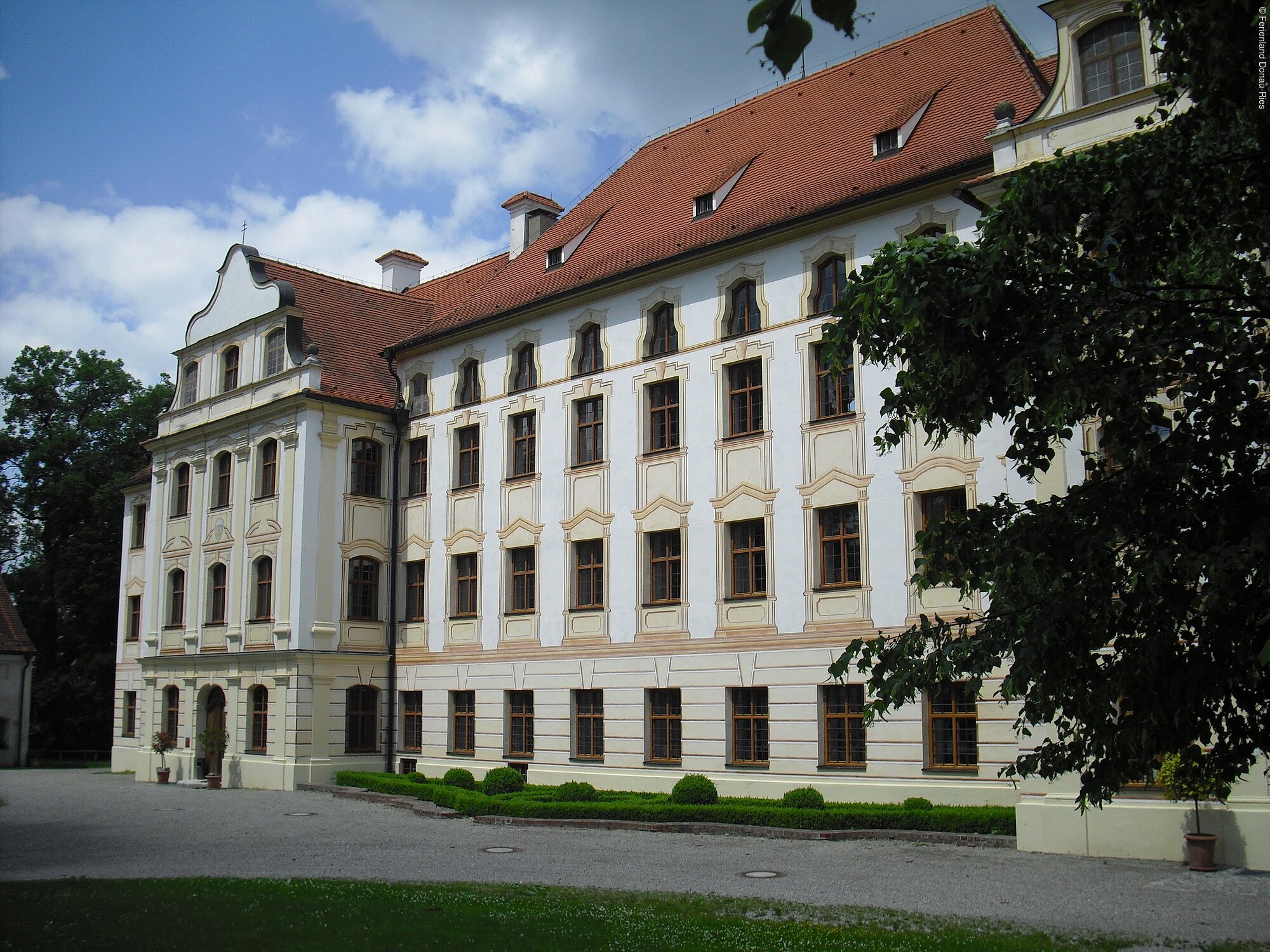 Wir beginnen die Wanderung an der Südseite des ehemaligen Benediktinerklosters Thierhaupten und folgen dem gekiesten Fußweg die steile, aber gut begehbare Lechleite hinab. Nachdem wir die Grabanlage der früheren Gutsherren passiert haben, überqueren wir die Friedberger Ach auf einem Holzsteg. Beim Klosterweiher angelangt können wir uns über die heimischen Fischarten informieren und erblicken die Auerochsenweide beim Brunnenwasser. Weiter führt uns der Weg durch den äußerst gepflegten Lehrgarten des Obst- und Gartenbauvereins.