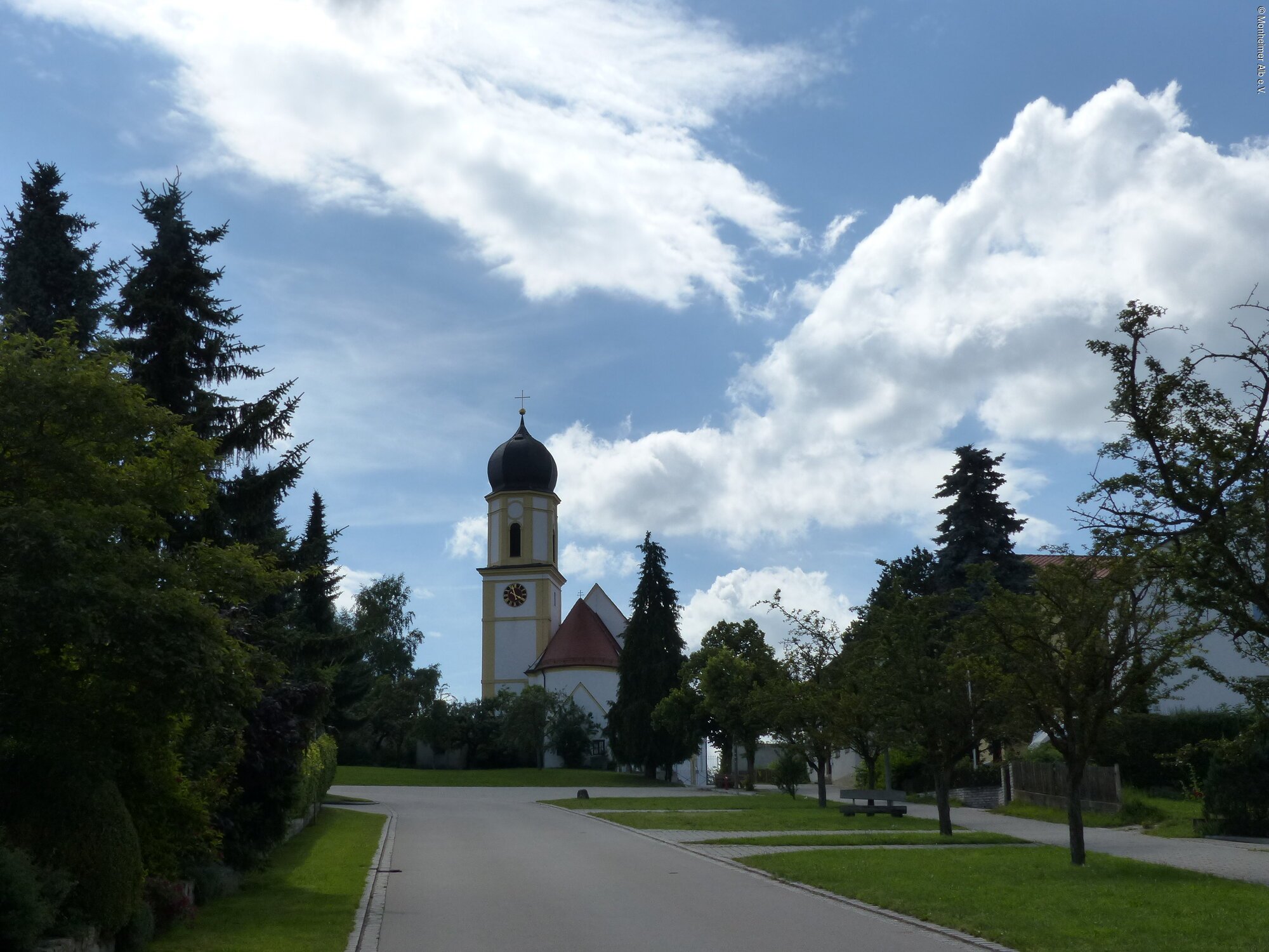 Wir erreichen Wolferstadt, wo die sehenswerte Pfarrkirche St. Martin zu einem Halt einlädt. Von dort geht es weiter dorfauswärts durch die landwirtschaftlich genutzte Flur zum Hentelberg. Hier lohnt ein Blick zurück auf Wolferstadt und das landschaftlich reizvolle Grenzgebiet zum südlichen Mittelfranken. Auf dem weiteren Weg passieren wir ein Dolinenfeld. Diese Erdtrichter sind zum Teil mit Wasser gefüllt und dienen als Rückzugsgebiet für seltene Tiere und Pflanzen. Wieder zurück in Otting erreichen wir den Schlossweiher, in dessen Wasser sich die Fassade des romantischen Schlosses spiegelt und gelangen kurz danach an den Ausgangspunkt unserer Rundtour.