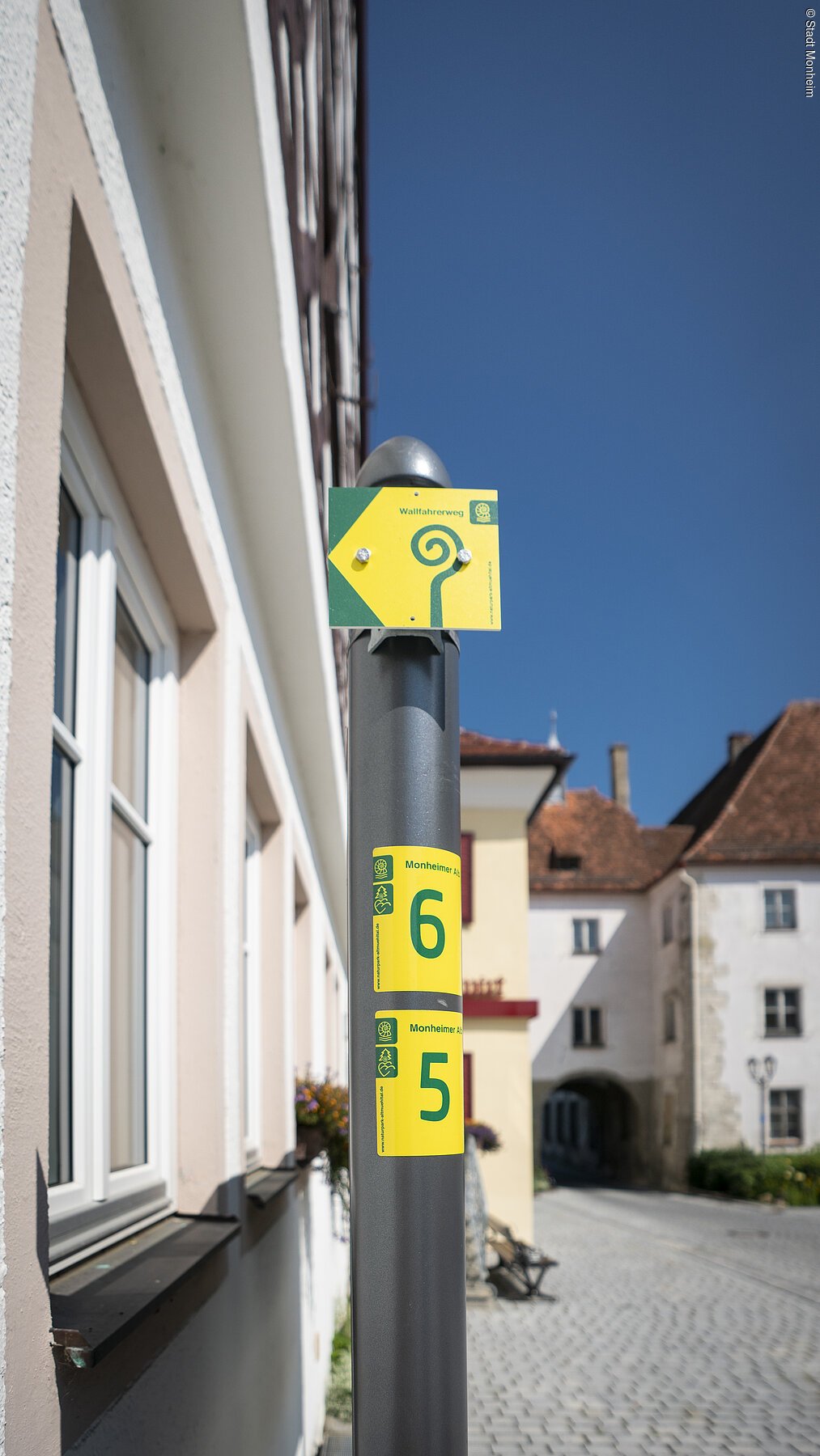 Vom Parkplatz in der Raiffeisenstraße in Monheim gehen wir durch Siedlungsgebiet und landwirtschaftliche Flur bis zum Waldrand, wo wir am Abtissenweiher vorbei den Wald betreten. Auf gekiesten Waldwegen und zwischendurch auch mal auf Pfaden, wandern wir an Grabhügeln aus der Hallstattzeit sowie einer Keltenschanze vorbei. Dann erreichen wir den Waldrand, an dem wir entlang und dann durch landwirtschaftliche Flur nach Wittesheim gelangen. Die Kalvarienbergkapelle steht auf einer der aus dem Ries heraustransportierten Jurakalkschollen. Von dort führt der Weg zunächst in ein idyllisches Tal mit kleinem Bachlauf und Trockenrasenflächen an den Hängen, dann wandern wir durch das beeindruckende Trockental der Gailach weiter. Nach einem kleinen Staudamm eines Weihers mit Infotafel geht es kurz durch den Wald absteigend ins Gailachtal, vorbei an der Moto-Cross-Strecke und an einer kleinen Kapelle und weiter durch die landwirtschaftliche Flur nach Warching. Nach Überquerung der Staatsstraße führt der Weg an Feldern und Wiesen vorbei, entlang des Waldrandes und durch den Wald nach Ried (keltische Ringwallanlage mit Infotafel). Von Ried aus geht es aussichtsreich vorbei an der Brandkapelle mit großer Kreuzweganlage zurück nach Monheim.